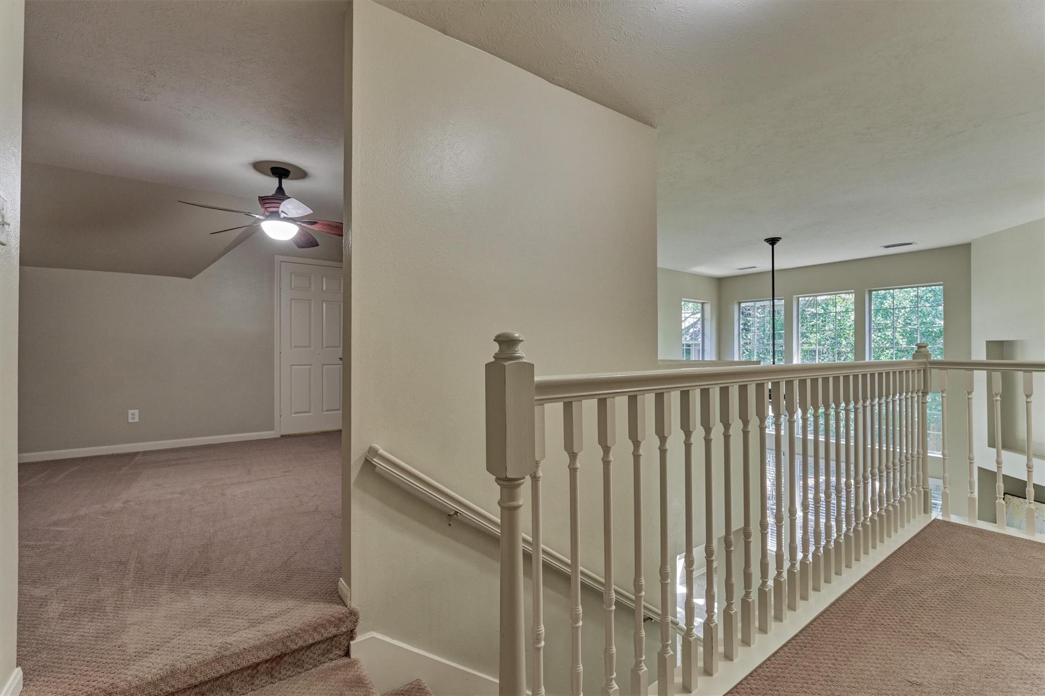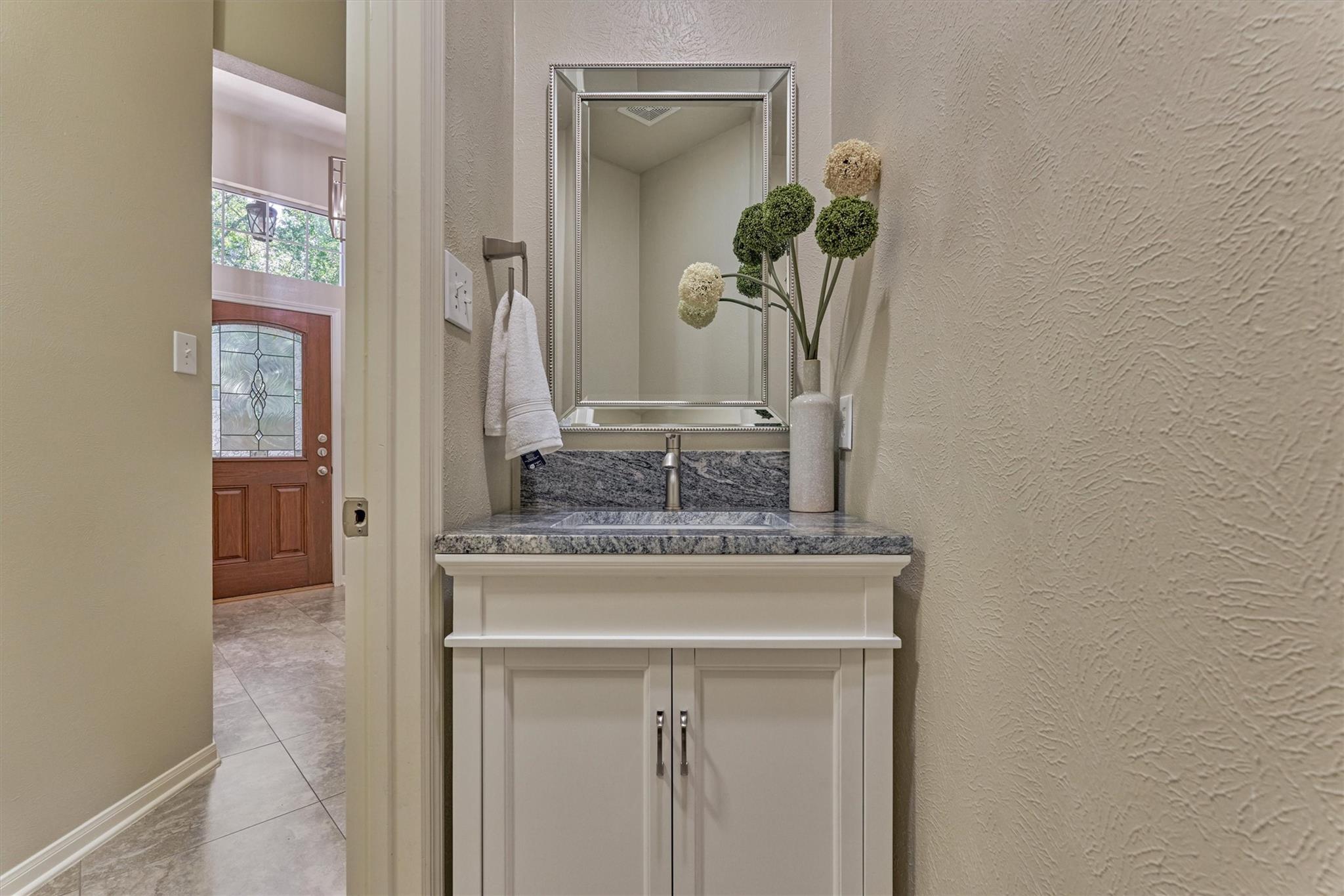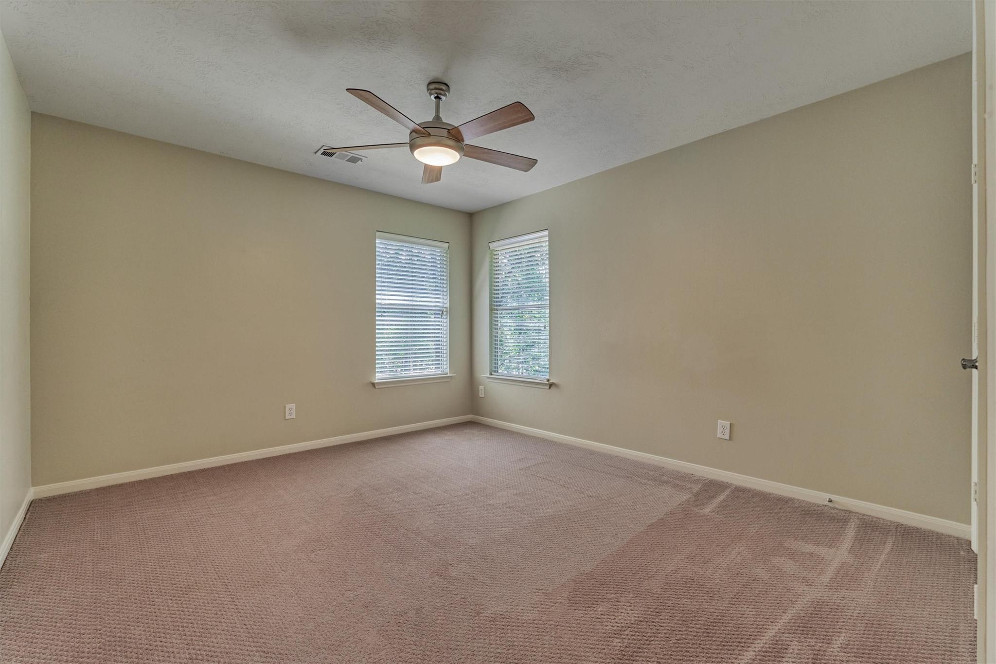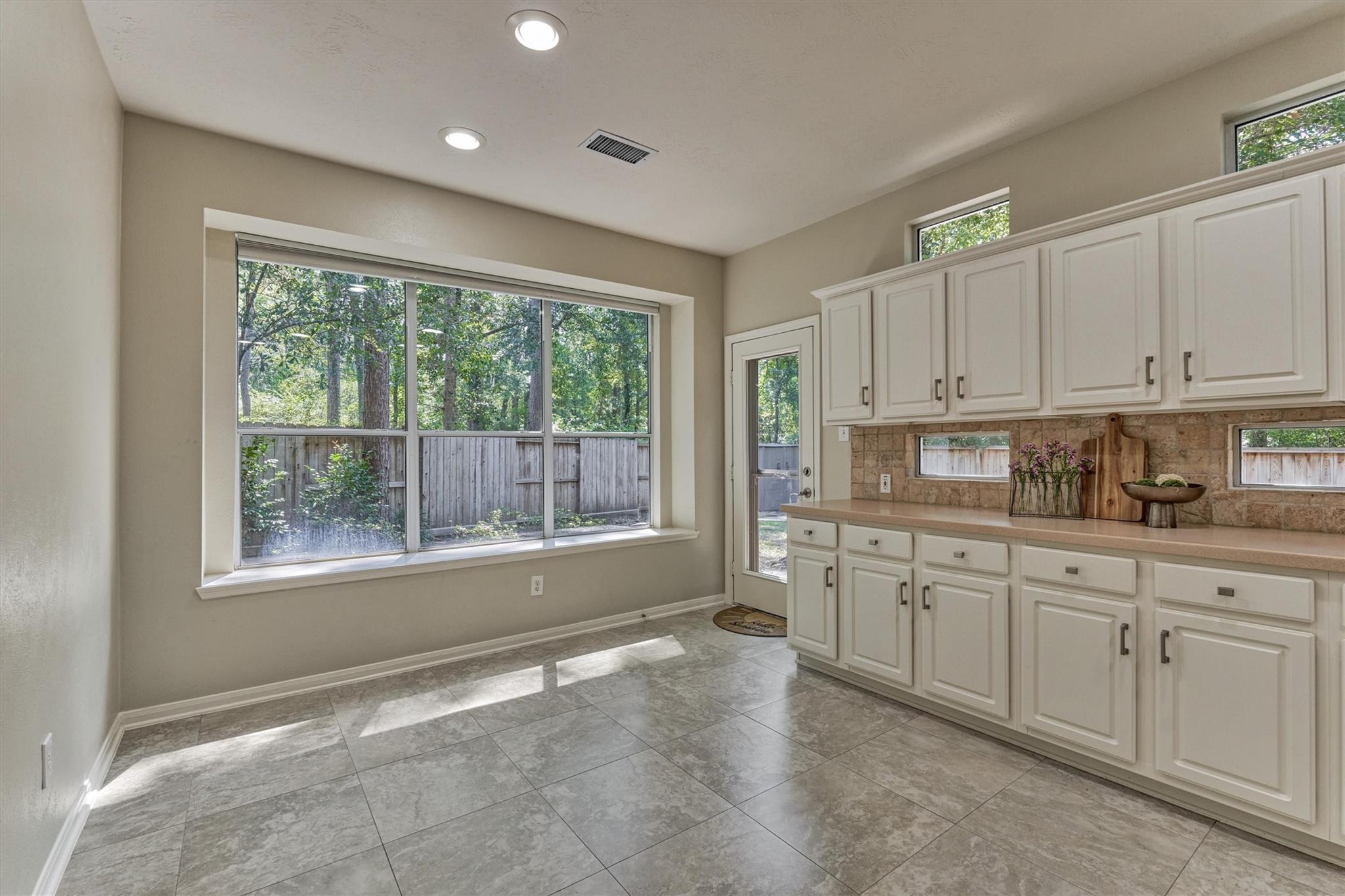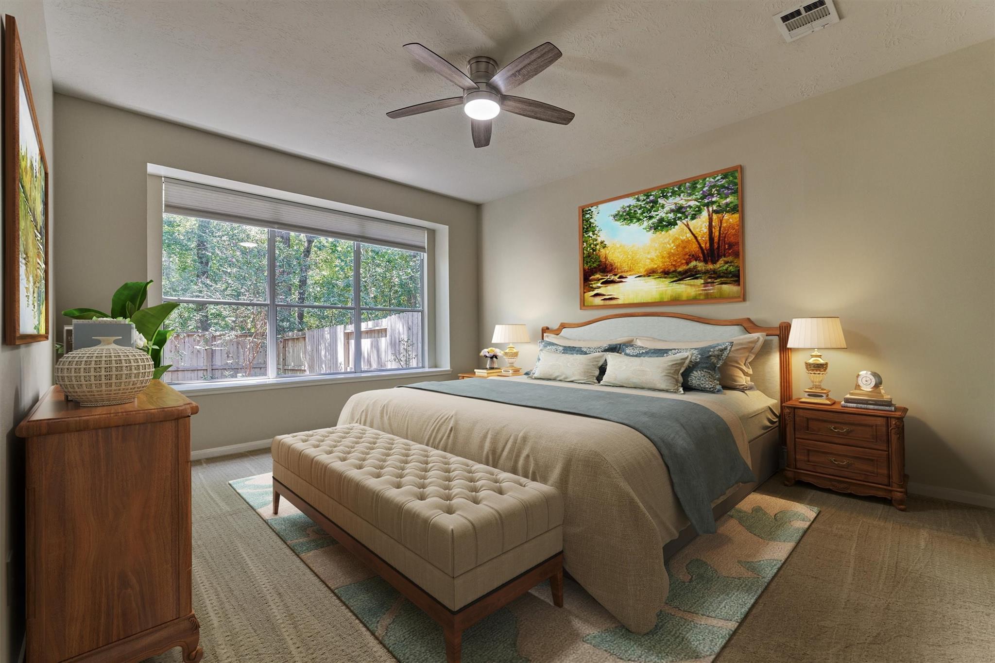 Prime Woodlands LOCATION, light, bright, and move-in ready! Lives like a SINGLE FAMILY! This beautifully updated home offers soaring ceilings, stunning two-story windows in the family living space with fireplace, and a private fenced backyard with NO REAR NEIGHBORS. 1ST FLOOR PRIMARY BEDROOM w/direct utility room access. The spacious kitchen is the heart of the home, featuring a granite island, NEWER Kohler PRO sink & faucet, UPDATED GAS COOKTOP, OVEN & MICROWAVE & included refrigerator. Formal dining + a private study or 4th bedroom option, provide flexibility for today's lifestyle. Upstairs you'll find a large GAMEROOM, w/additional FLEX SPACE, STORAGE! Recent 2025 updates include NEW H20 Heater, granite counters in the primary bath, updated lighting, refreshed half bath with granite vanity, garage door opener, disposal. HOA maintains the front lawn. Zoned to sought-after WOODLANDS HIGH SCHOOL, with a low tax rate. Near I-45, Hwy 242, EXXONMOBIL, shopping, hospitals, Hughes Landing.