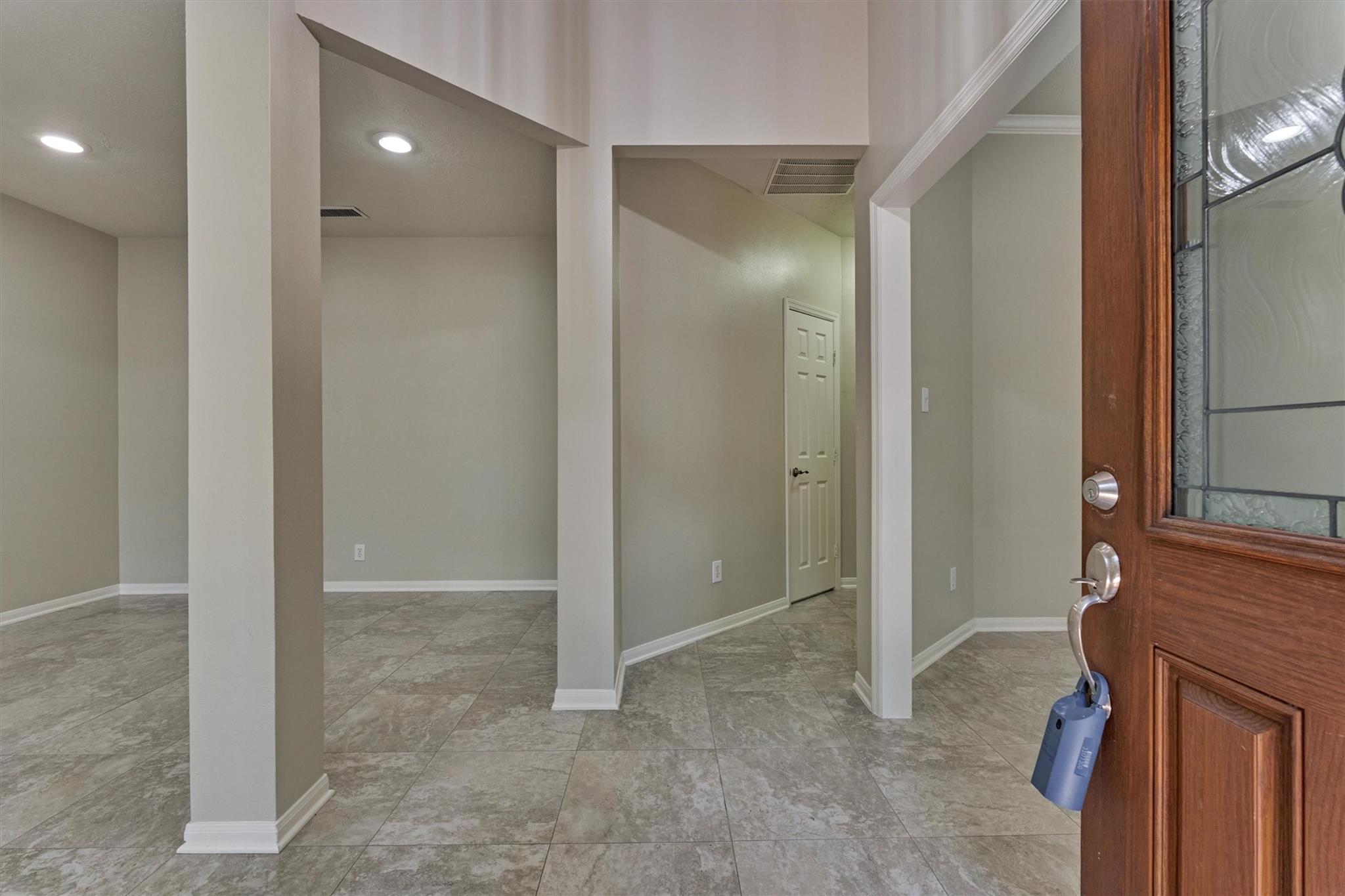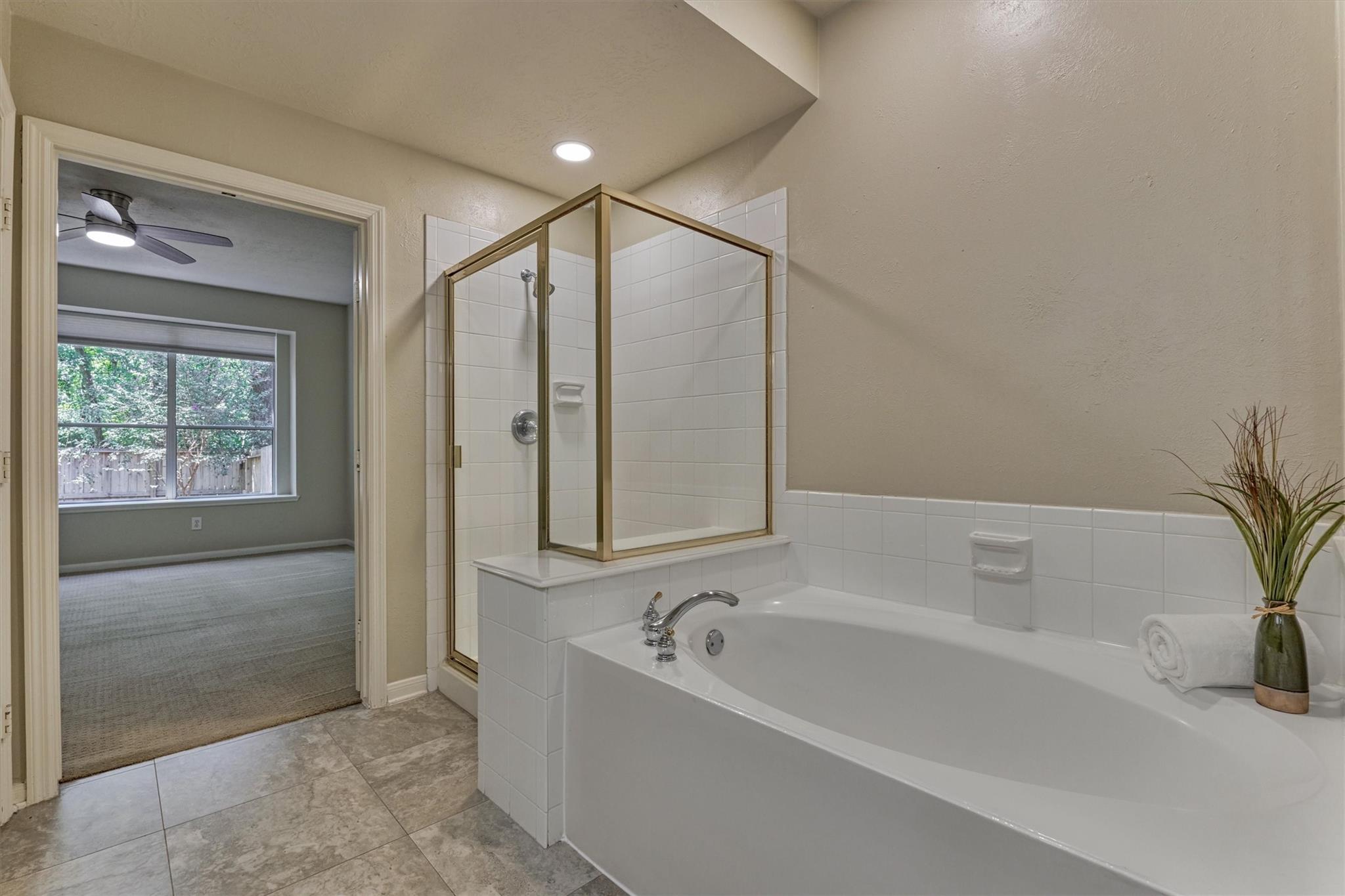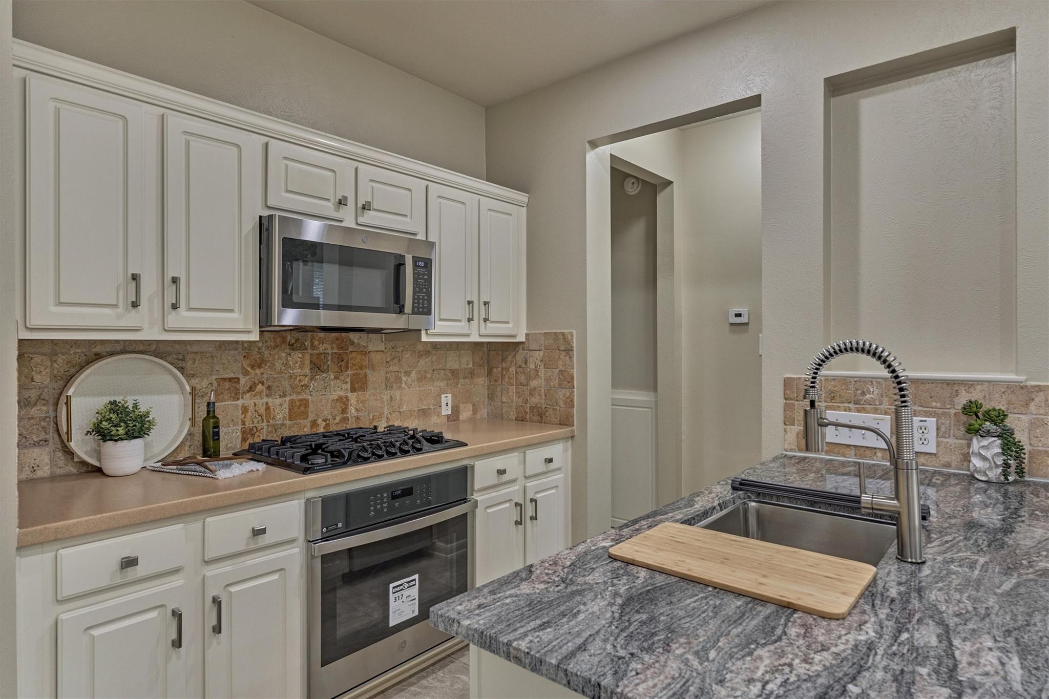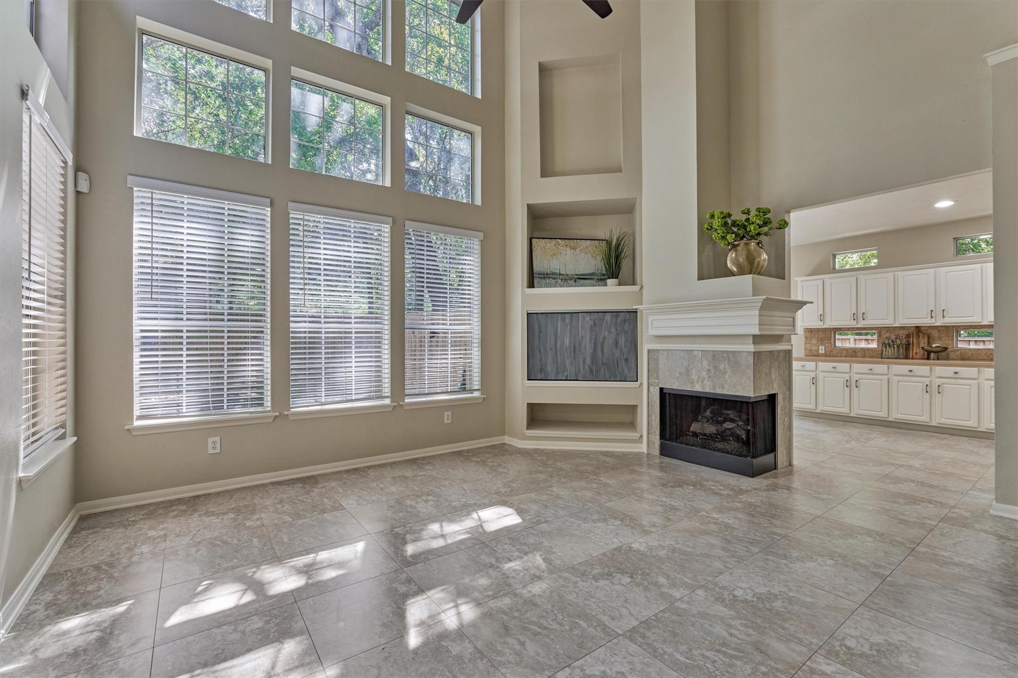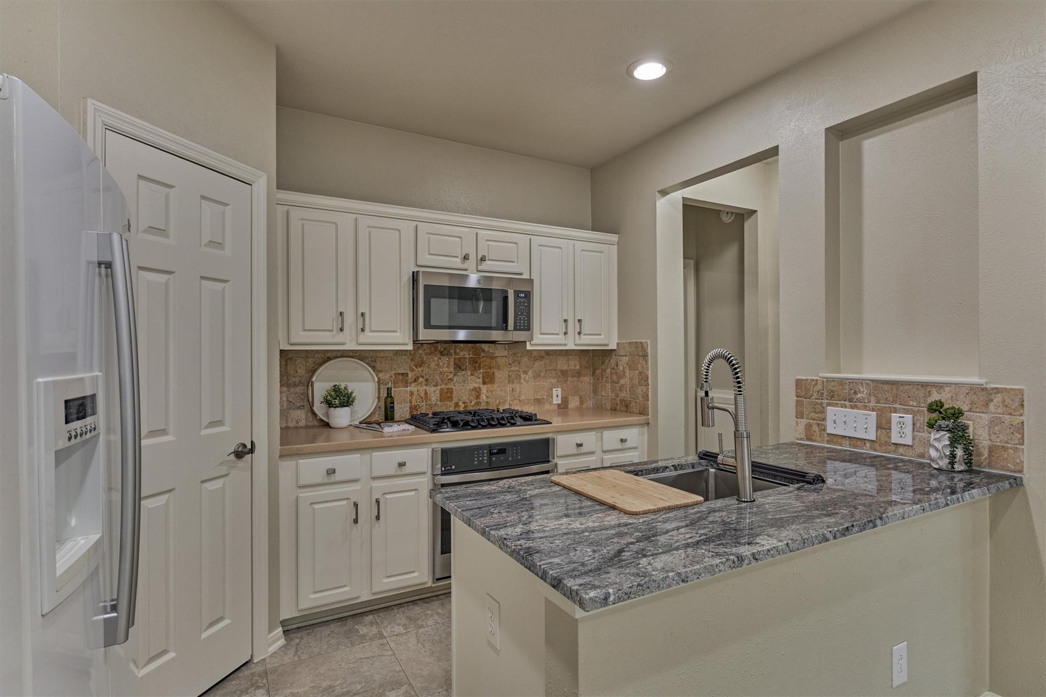 Prime Woodlands LOCATION, light, bright, and move-in ready! Lives like a SINGLE FAMILY! This beautifully updated home offers soaring ceilings, stunning two-story windows in the family living space with fireplace, and a private fenced backyard with NO REAR NEIGHBORS. 1ST FLOOR PRIMARY BEDROOM w/direct utility room access. The spacious kitchen is the heart of the home, featuring a granite island, NEWER Kohler PRO sink & faucet, UPDATED GAS COOKTOP, OVEN & MICROWAVE & included refrigerator. Formal dining + a private study or 4th bedroom option, provide flexibility for today's lifestyle. Upstairs you'll find a large GAMEROOM, w/additional FLEX SPACE, STORAGE! Recent 2025 updates include NEW H20 Heater, granite counters in the primary bath, updated lighting, refreshed half bath with granite vanity, garage door opener, disposal. HOA maintains the front lawn. Zoned to sought-after WOODLANDS HIGH SCHOOL, with a low tax rate. Near I-45, Hwy 242, EXXONMOBIL, shopping, hospitals, Hughes Landing.