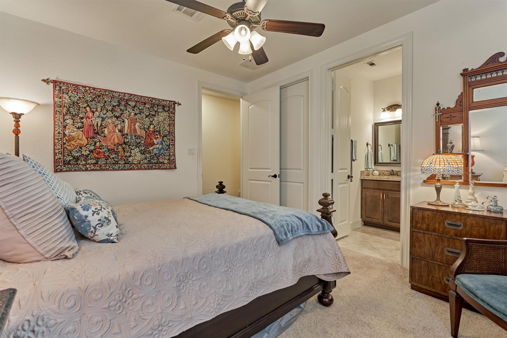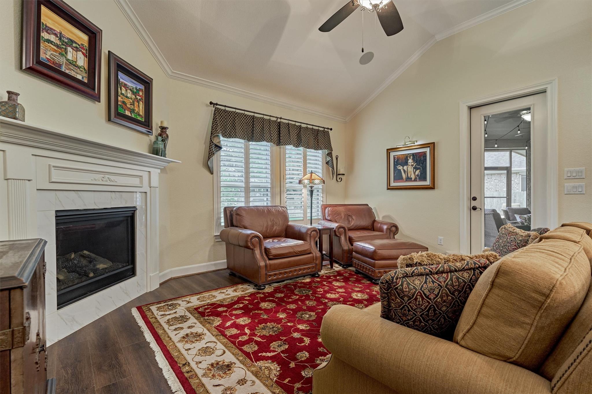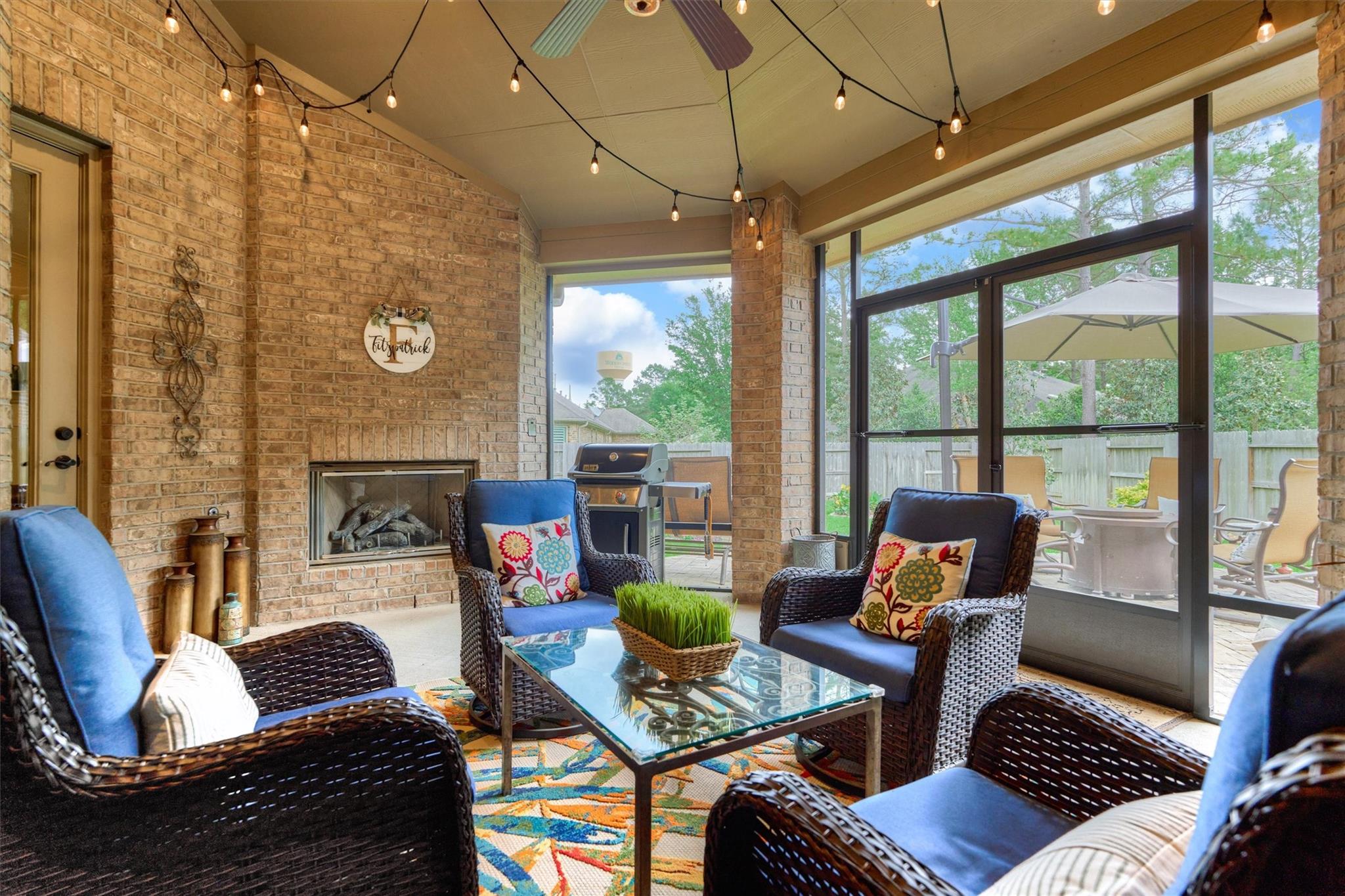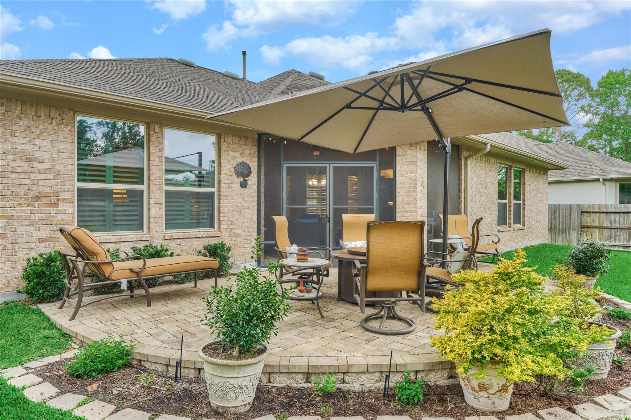 CUL-DE-SAC CHARM meets LOCK & LEAVE LIVING in this beautifully maintained Taylor Morrison 1-story in the highly sought-after 55+ Bonterra section of Woodforest golf course community, offering clubhouse, fitness center, pool, sports courts, trails, among other amenities at-large! Thoughtfully designed floor plan features 3 BRs, 3 full baths + oversized 3-car garage w/awesome storage - a rare find! Open-concept floor plan w/versatile living area: dining/living rooms, large island kitchen w/dbl ovens, opening to den with tile surround fireplace w/mantel, and screened-in patio with cozy fireplace for year-round ambience, including French-style screen doors to custom pavestone patio & exquisite backyard oasis with mature landscaping! Secluded owner's retreat features generous space & spa-like bath w/oversized shower! Two spacious secondary bedrooms incl. guest suite! New storm door added to garage + utility rm w/sink! Close proximity to Lake Conroe & The Wdlds amenities/medical district!