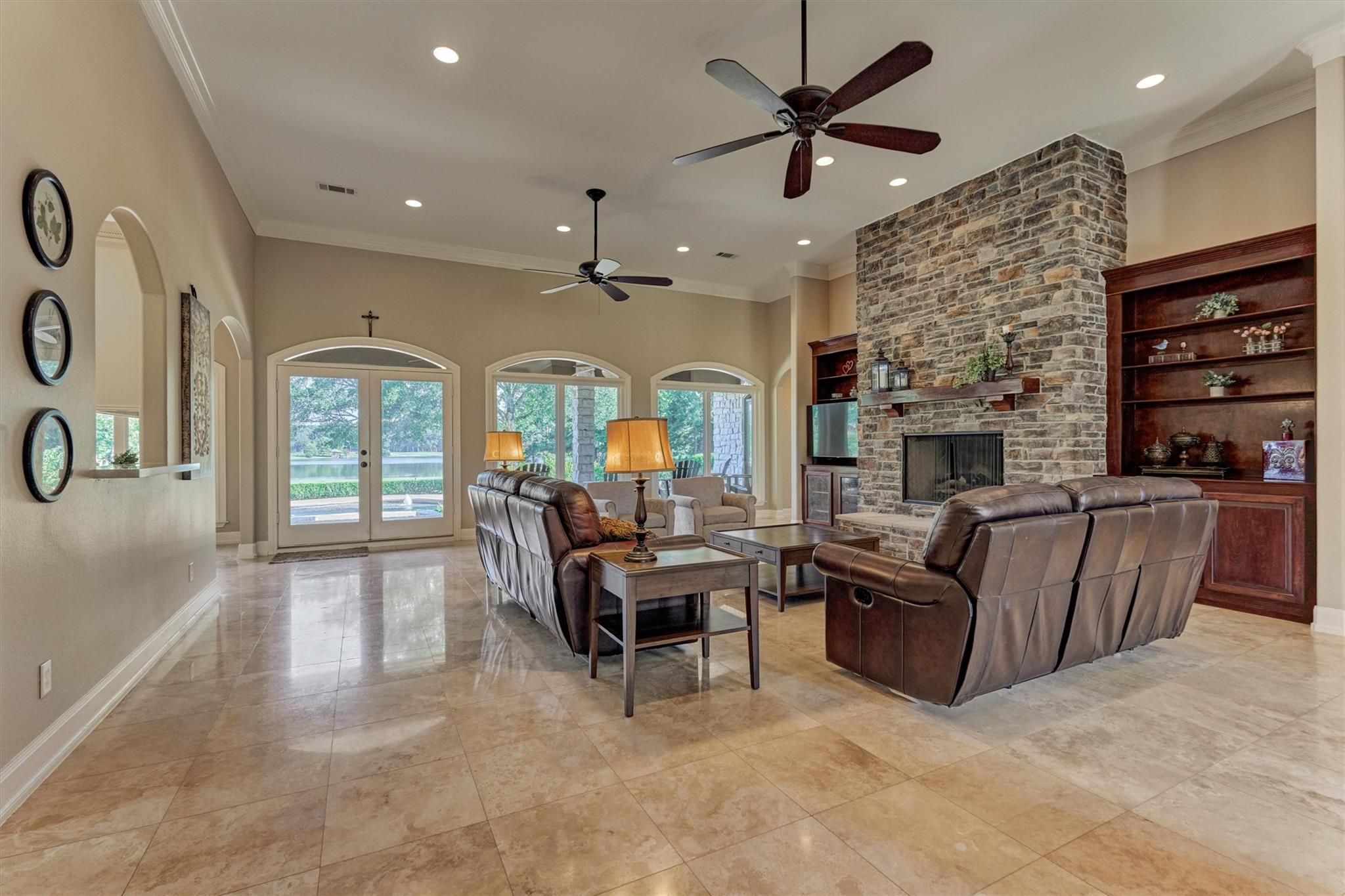 A MUST-SEE! SPRAWLING, WATERFRONT, 3.26-acre lot in gated Crown Oaks community features a 1.5-story, 4757 SF custom home + additional 444 SF guest quarters w/kitchenette (5201 SF total), 765 SF carport, 50x40 shop, shed & greenhouse, sparkling pool & premium covered outdoor living area - a one-of-a-kind! 2021 roof, tankless H20 heater, water softener, 24-zone sprinkler, newly updated quartz kitchen, new energy-efficient windows, luxe primary bath renovation with spa-like shower & tub, large vanity w/dual sinks, makeup mirror, XL primary closet w/block island dresser, and 3 spacious secondary bedrooms including a guest suite + newly remodeled baths! Versatile living area w/2 home offices/optional exercise rm, game rm with full wet bar, open kitchen/den with panoramic water views! A rare lakefront retreat that blends luxury, function & scenic tranquility - built for year-round enjoyment! Zoned to top-ranked Montgomery ISD, minutes to popular amenities in The Woodlands/Lake Conroe! HURRY!