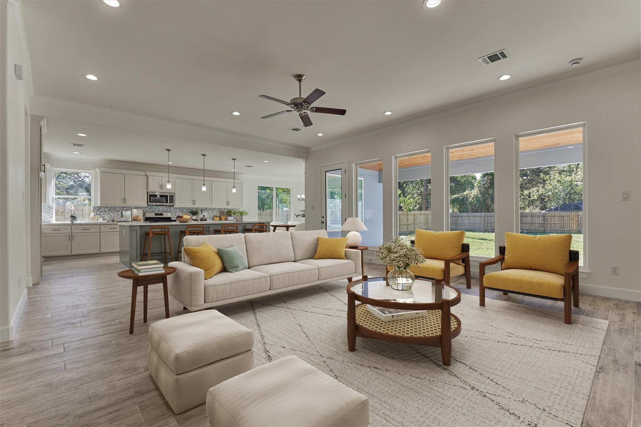 NEVER LIVED IN CUSTOM HOME with all the bells & whistles in this 4 BR/2.5 BTH, new fully fenced backyard, and situated in sought-after Spring Hills community offering larger lots, no HOA, no restrictions, low taxes, excellent schools, and a stone's throw to premier amenities in The Woodlands w/convenient access to major thoroughfares! Designed for modern living, the open-concept layout is flooded w/natural light and features a chef's kitchen with soft-close drawers, pendant lighting, large walk-in pantry, and an oversized island w/bar seating seamlessly flowing into the den & dining rm w/expansive wdws overlooking a backyard oasis with well-appointed covered patio w/cedar-lined ceiling for year-round living at its finest! Secluded owner's retreat features a spa-like bath w/modern finishes + dual walk-in closets w/built-ins. Secondary BRs are versatile for guests, hobbies, home ofc + 1/2 bath for guests! Savor this tasteful NEW build w/sizeable lot in a prime location in North Houston!