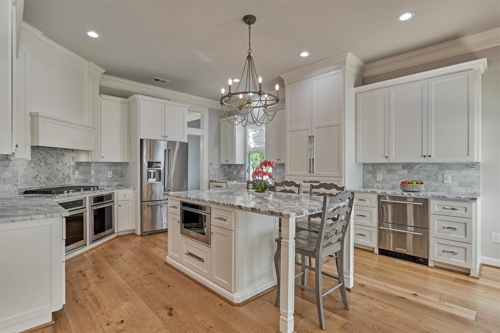 BETTER THAN NEW - this classic home with Southern charm oozes w/nostalgic character in the quaint, "Rockwellian" neighborhood of Cottage Green, boasting newly tiled front steps/porch, new fence, sparkling white interior, '22 roof, recently updated kitchen, baths, more! Savor lush trees behind home with no rear neighbors in this handsome 2-story entry with rich millwork, encased openings, wood treads, hardwoods throughout! Enclosed home office, formal dining & Chef's island kitchen w/stainless appliances, double ovens, abundant storage, sunny breakfast rm opening to a cozy den with fireplace overlooking a private backyard! Secluded primary retreat with luxe bath featuring Carrara marble, large secondary BRs w/impressive clst space & spacious game rm! Extended covered patio with priceless green space views - ideal for year-round outdoor living. Oversized 2-car garage! Walk/ride to premier dining/shops, Bush Elem, parks, pools! Don't miss out on this special opportunity in Cottage Green!