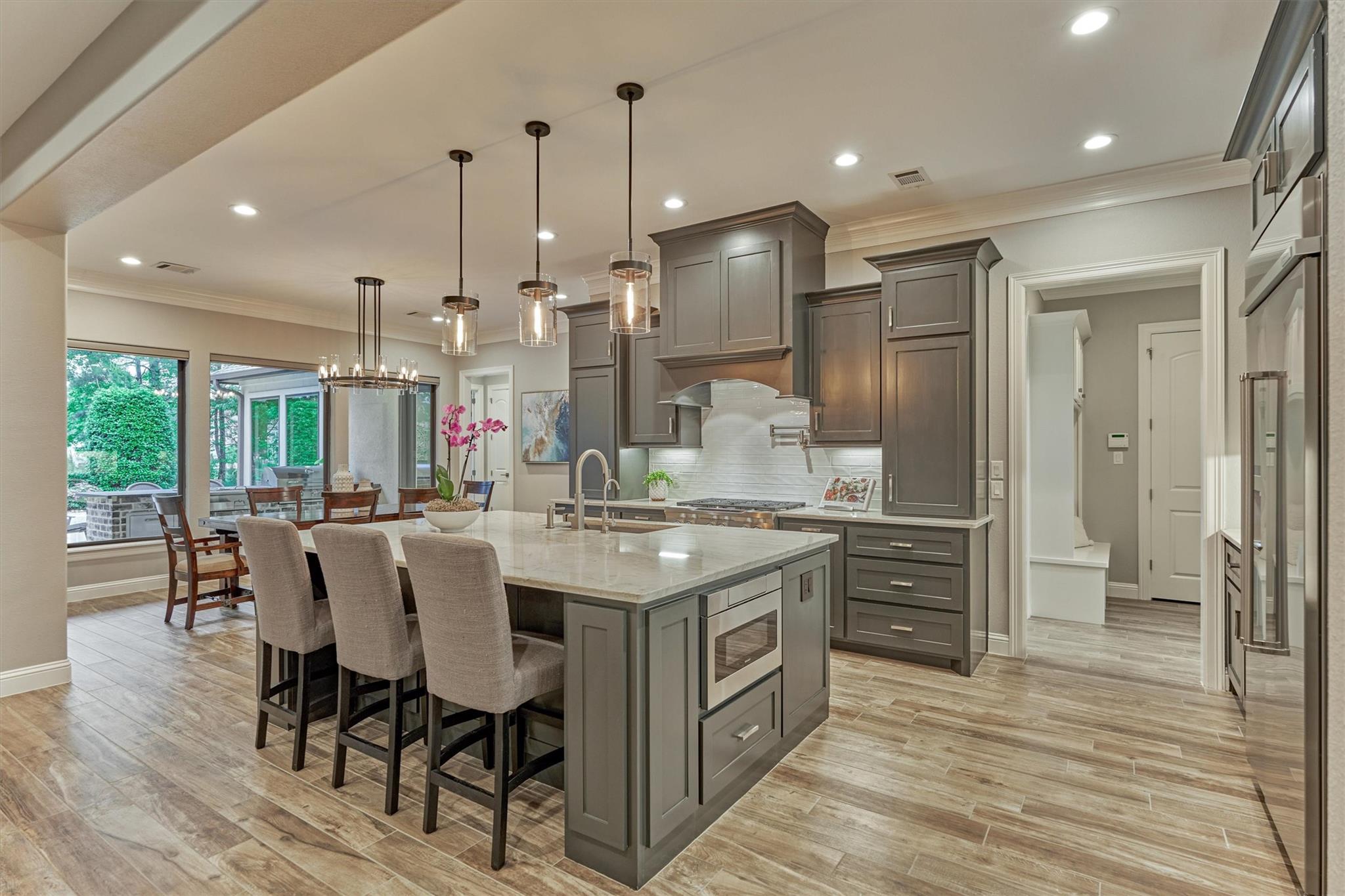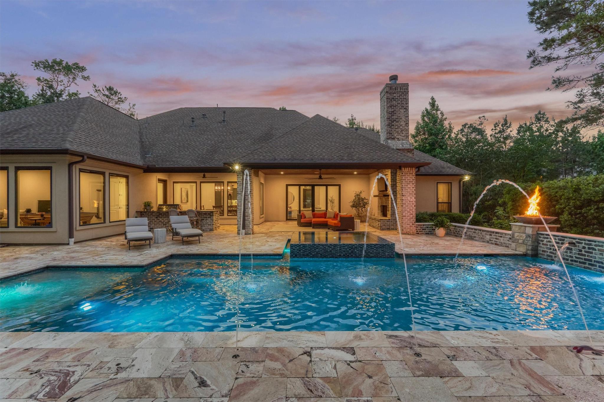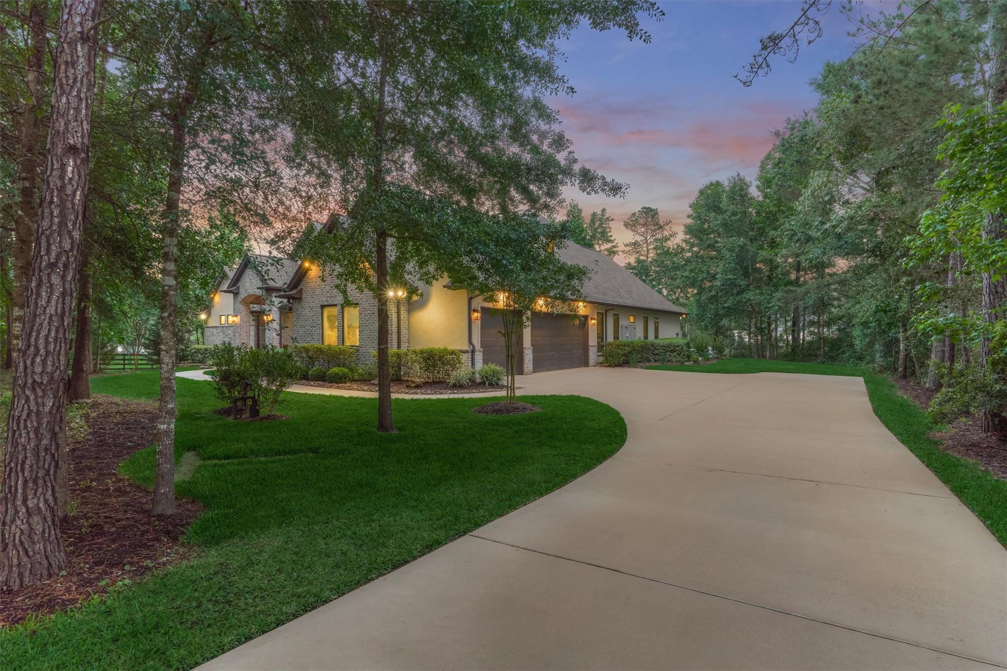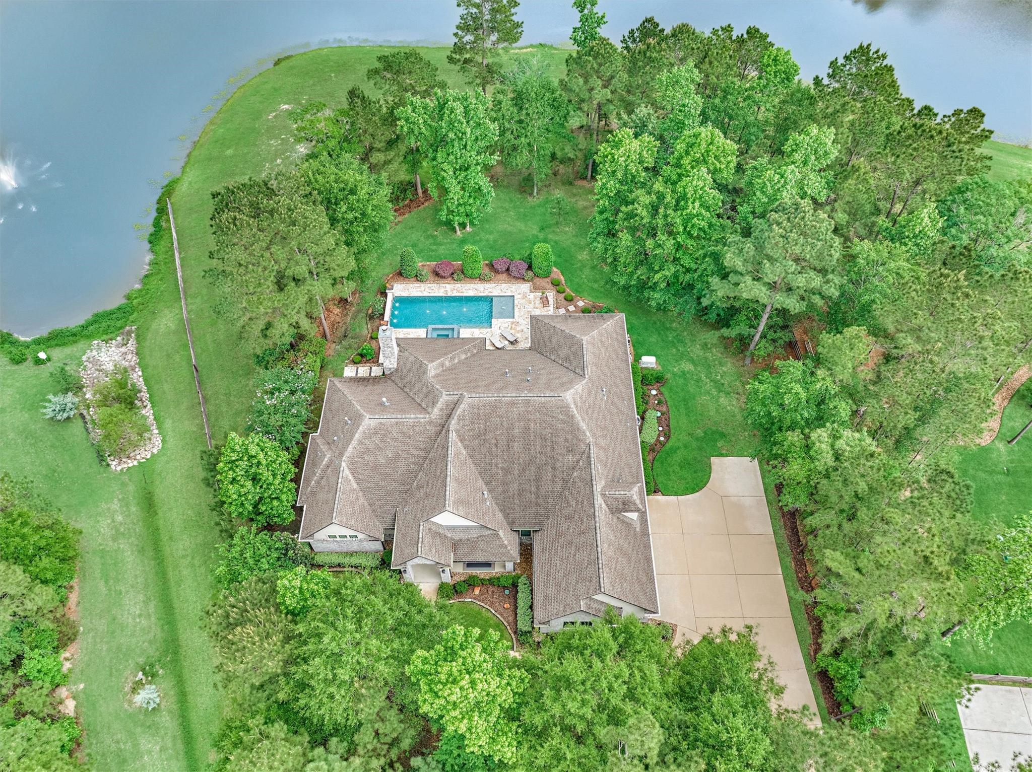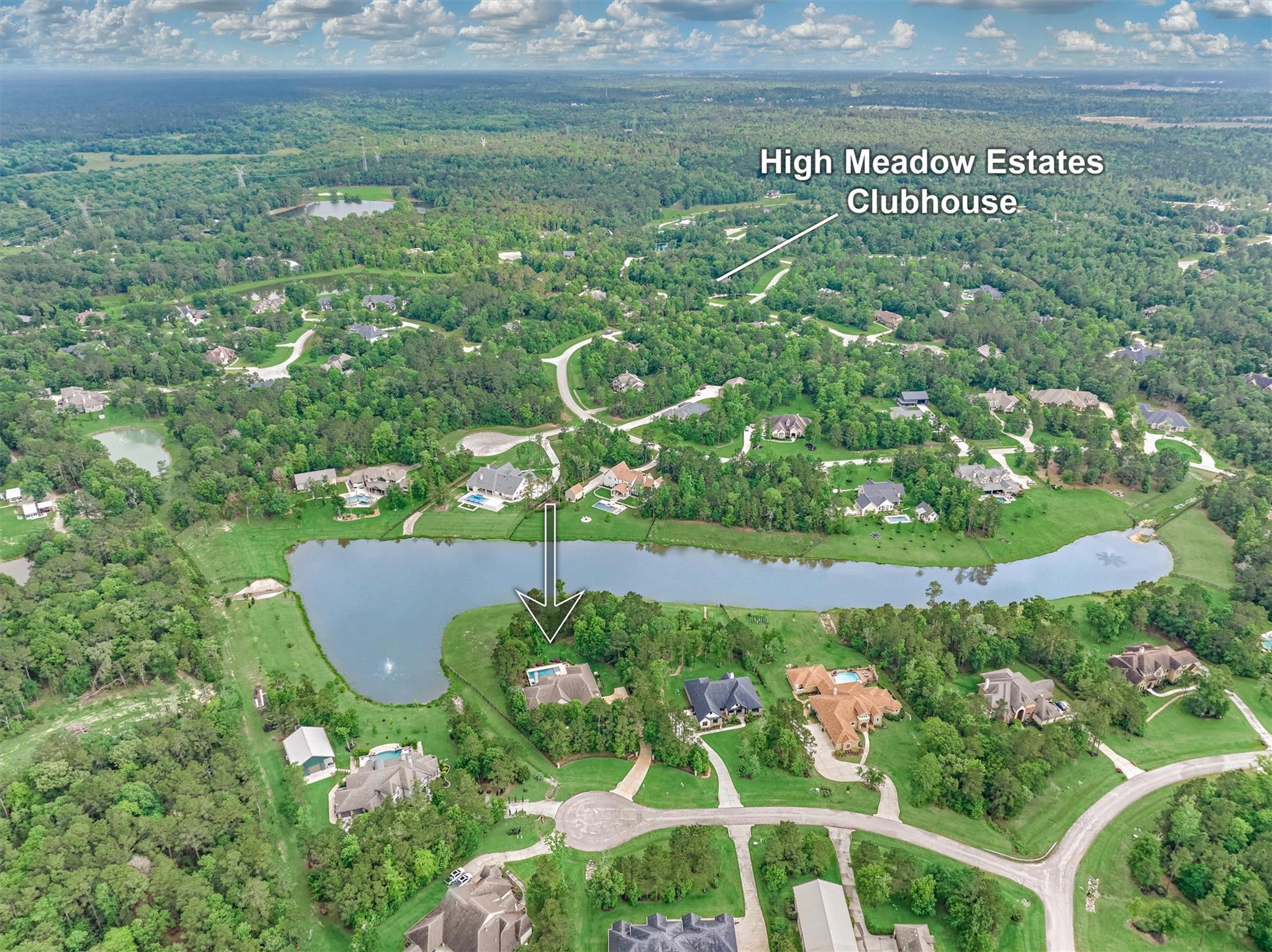 LUXURY MEETS SERENITY on this 2.2 ACRE WATERFRONT/CUL-DE-SAC lot in coveted High Meadow Estates - luxurious estate living in a peaceful setting convenient to N. Houston amenities! Savor modern-chic elegance in this transitional 1.5 story home w/premium finishes & architectural details in coffered ceilings, commercial grade sliders, gourmet kitchen w/B-I refrigerator, wine chiller, pot-filler, large block island w/bar seating, osmosis filtration system w/hot water recirculation, H20 softener & generator - priceless! Grand foyer flows into an open-concept design w/panoramic lake views incl. resort-like setting with sparkling pool & spa, aesthetic fire bowls & elaborate outdoor living area w/summer kitchen, fireplace, indoor/outdoor speaker system! Idyllic floor plan features a secluded owner's retreat w/spa-like bath, dual laundry rooms for ultra convenience, spacious secondary BRs, home ofc, game rm & flex rm upstairs! Cost-effective well water, awesome storage, security suite, MORE!