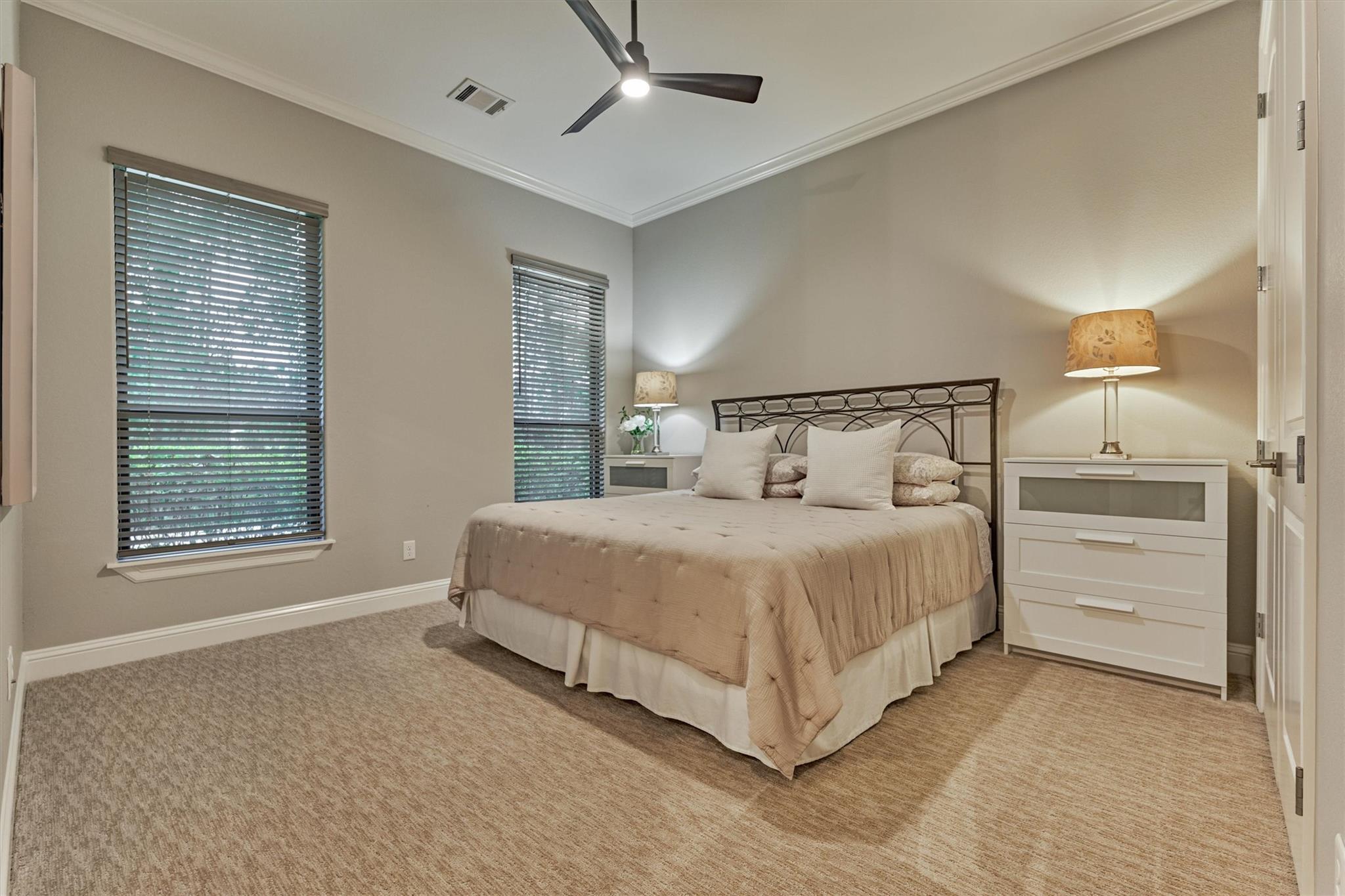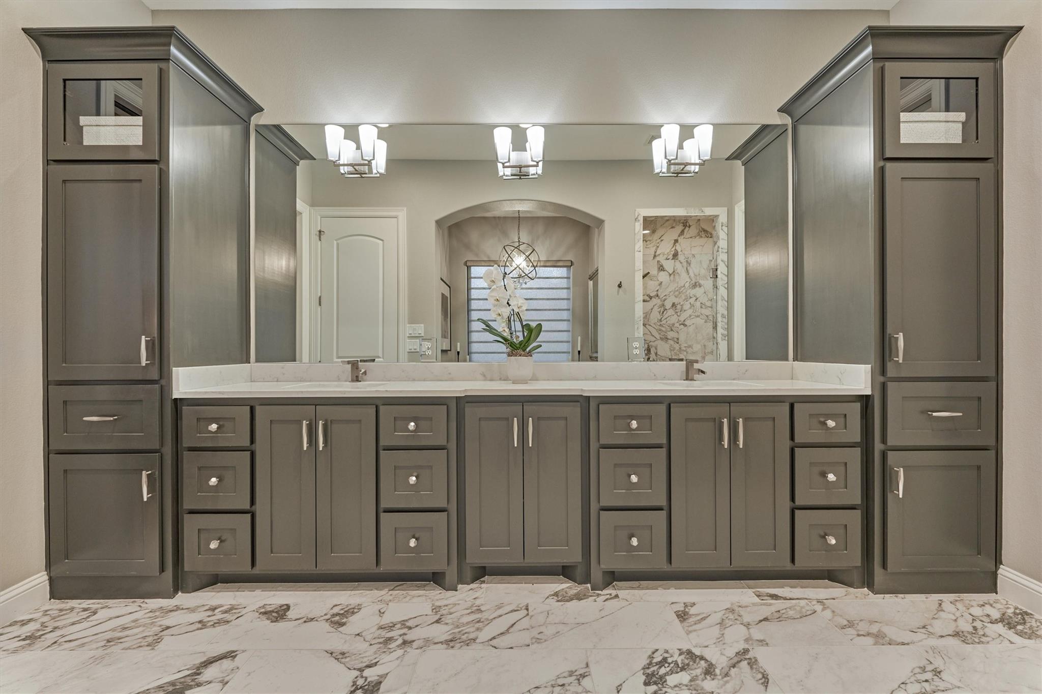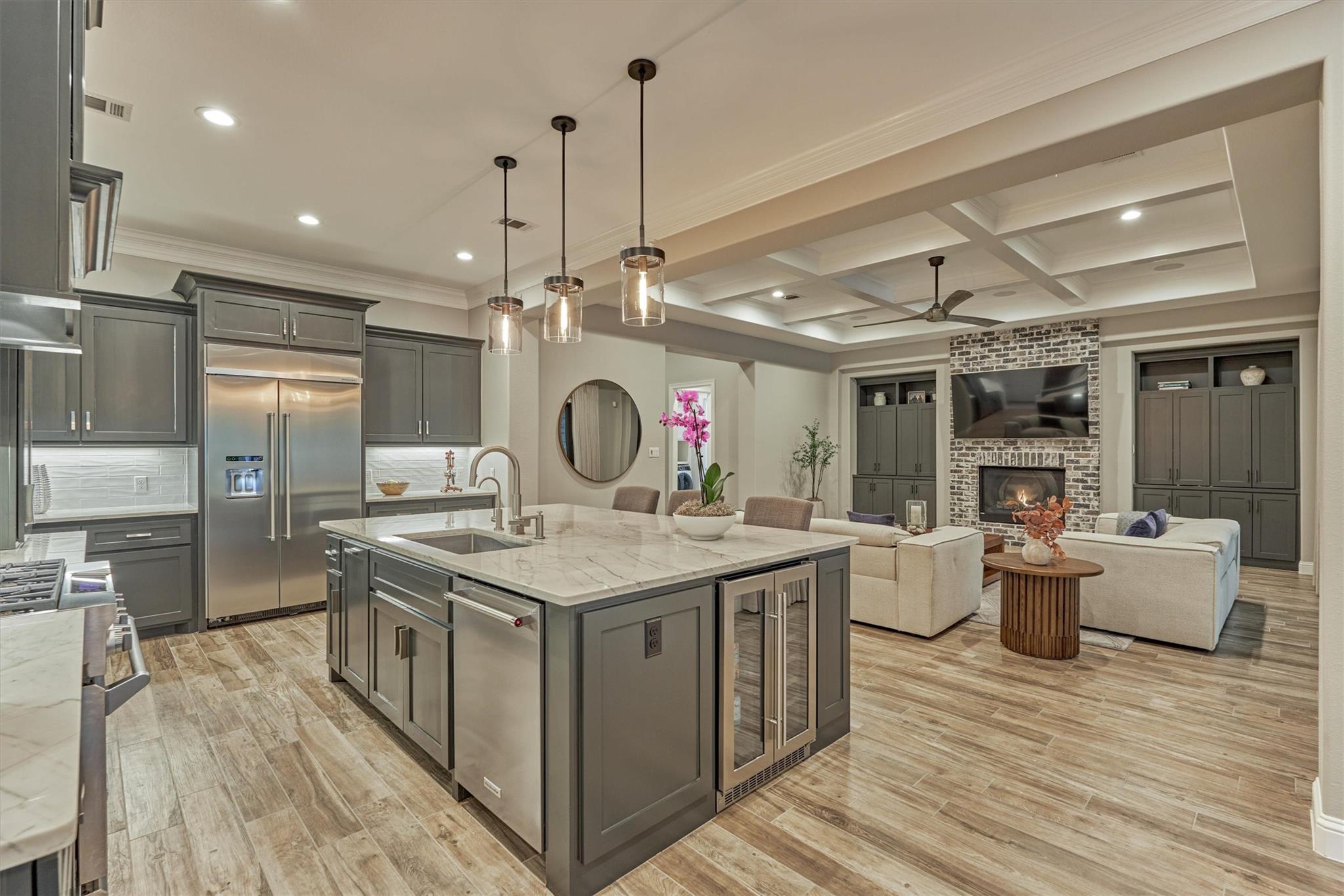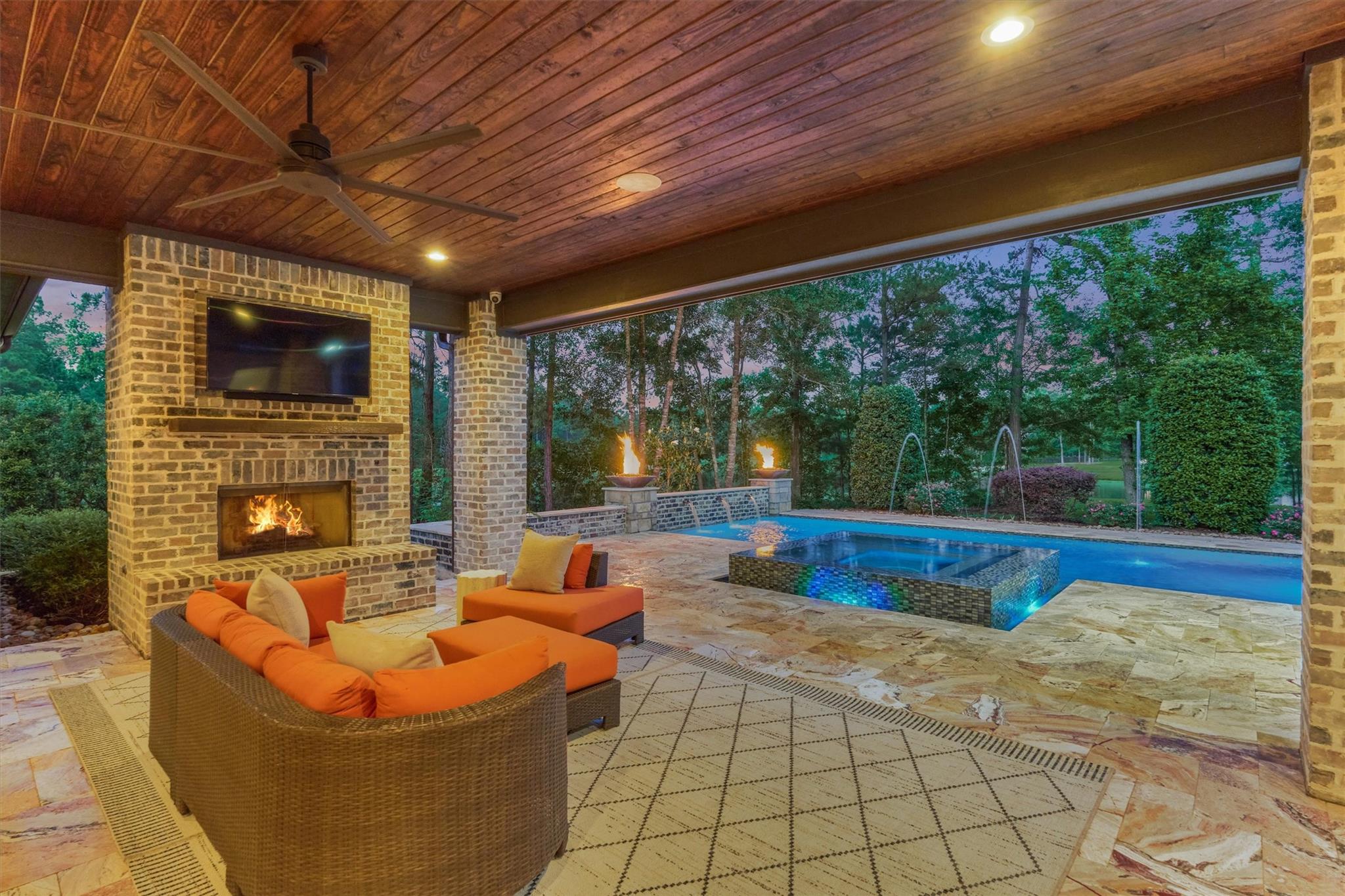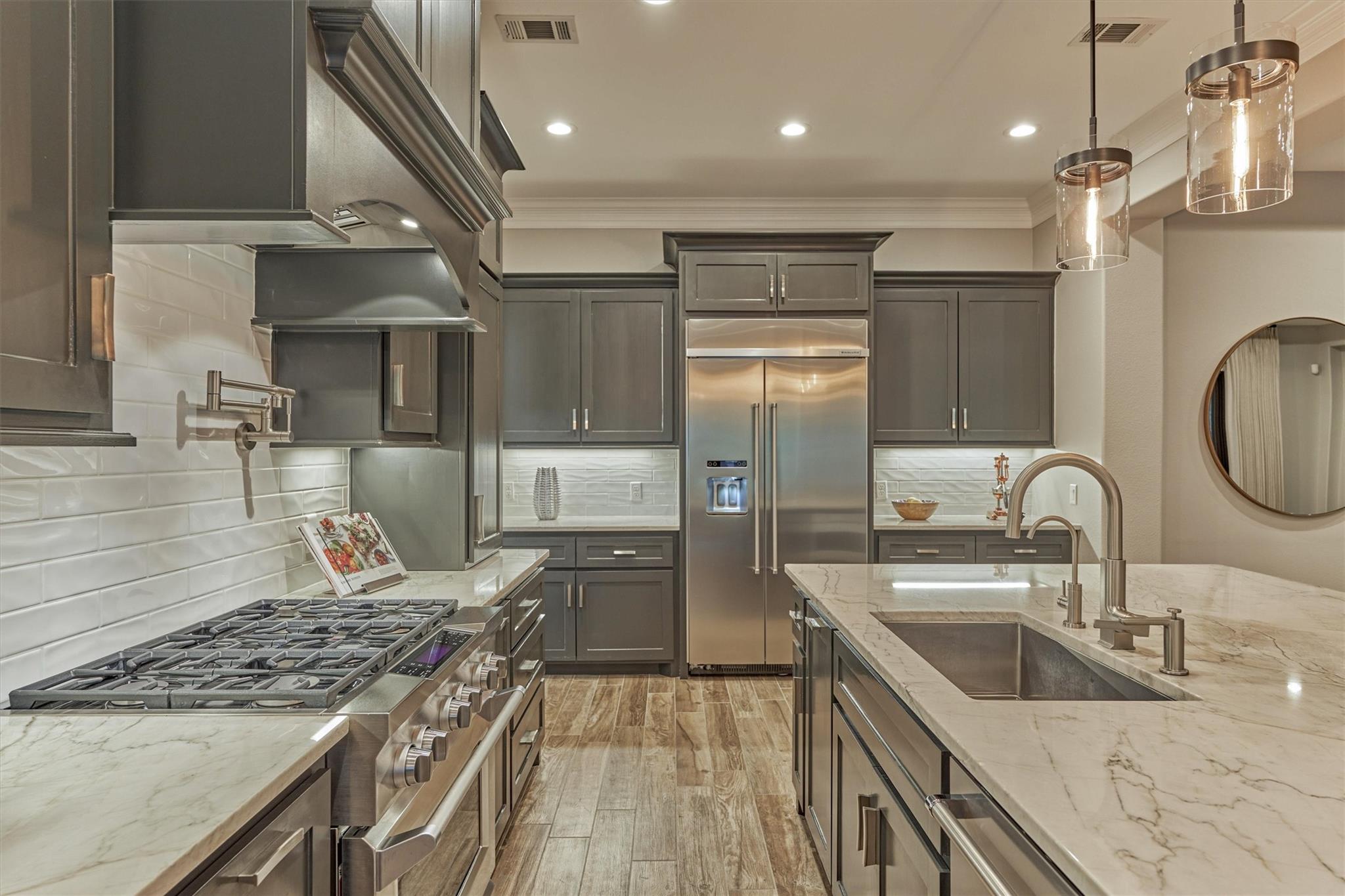 LUXURY MEETS SERENITY on this 2.2 ACRE WATERFRONT/CUL-DE-SAC lot in coveted High Meadow Estates - luxurious estate living in a peaceful setting convenient to N. Houston amenities! Savor modern-chic elegance in this transitional 1.5 story home w/premium finishes & architectural details in coffered ceilings, commercial grade sliders, gourmet kitchen w/B-I refrigerator, wine chiller, pot-filler, large block island w/bar seating, osmosis filtration system w/hot water recirculation, H20 softener & generator - priceless! Grand foyer flows into an open-concept design w/panoramic lake views incl. resort-like setting with sparkling pool & spa, aesthetic fire bowls & elaborate outdoor living area w/summer kitchen, fireplace, indoor/outdoor speaker system! Idyllic floor plan features a secluded owner's retreat w/spa-like bath, dual laundry rooms for ultra convenience, spacious secondary BRs, home ofc, game rm & flex rm upstairs! Cost-effective well water, awesome storage, security suite, MORE!
