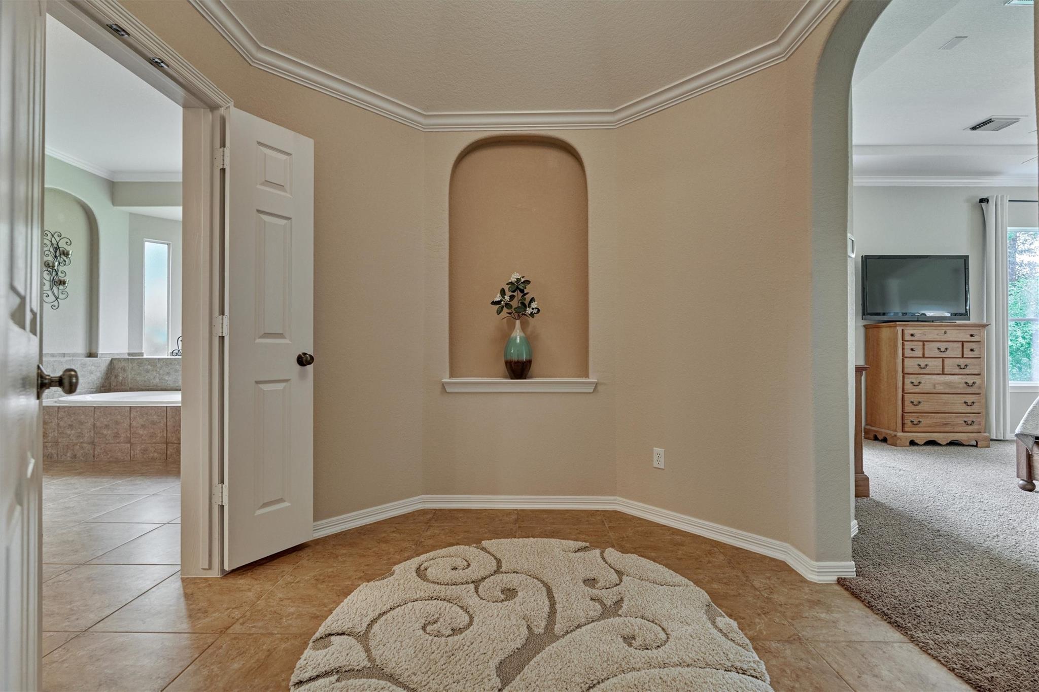 A RARE FIND AT THIS PRICE - over 2/3 acre, prime cul-de-sac lot with oversized 4-car garage, porte cochere with motor court, tree-lined backyard oasis for ultimate privacy with resort-like pool, custom outdoor living area with vaulted ceiling, summer kitchen, bar seating & new roof - WOW! This 5 BR jewel also features recent HVAC units (downstairs brand new), pool equipment, fence & driveway gate! Flooded with natural light, this immaculate home showcases soaring, 2-story ceilings, formal dining rm w/rich wood floors, private home ofc, chef's kitchen w/stainless appliances incl. double ovens + sunny breakfast room. Den offers panoramic views of the serene grounds! Secluded owner's retreat shines w/relaxing sitting area, fireplace & rotunda leading to luxe primary bath w/vanity area, jetted tub + dual closets! Massive game room & 4 XL secondary bedrooms upstairs, including bonus flex room - versatile exercise/media room! Minutes to Lake Conroe/The Wdlds! Excellent schools! High & dry!