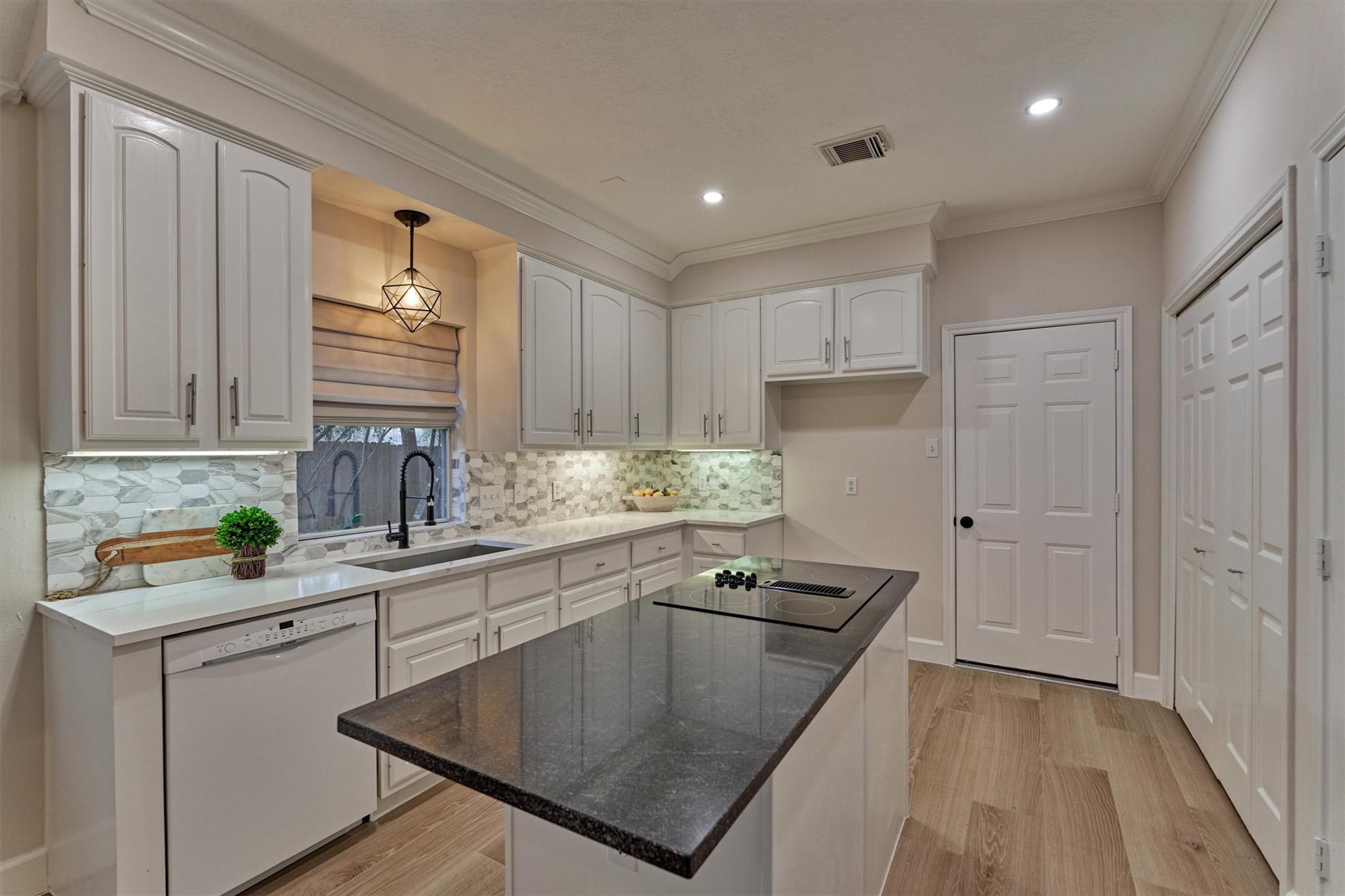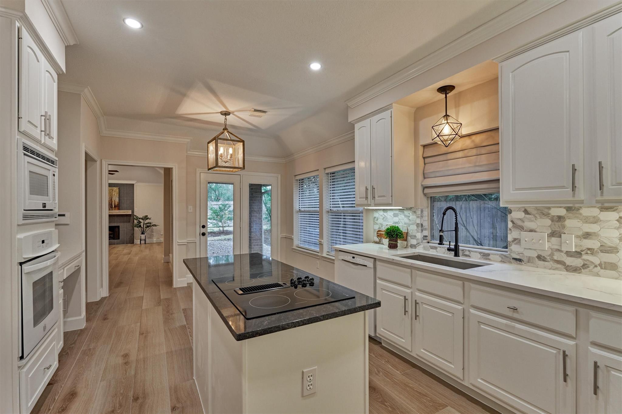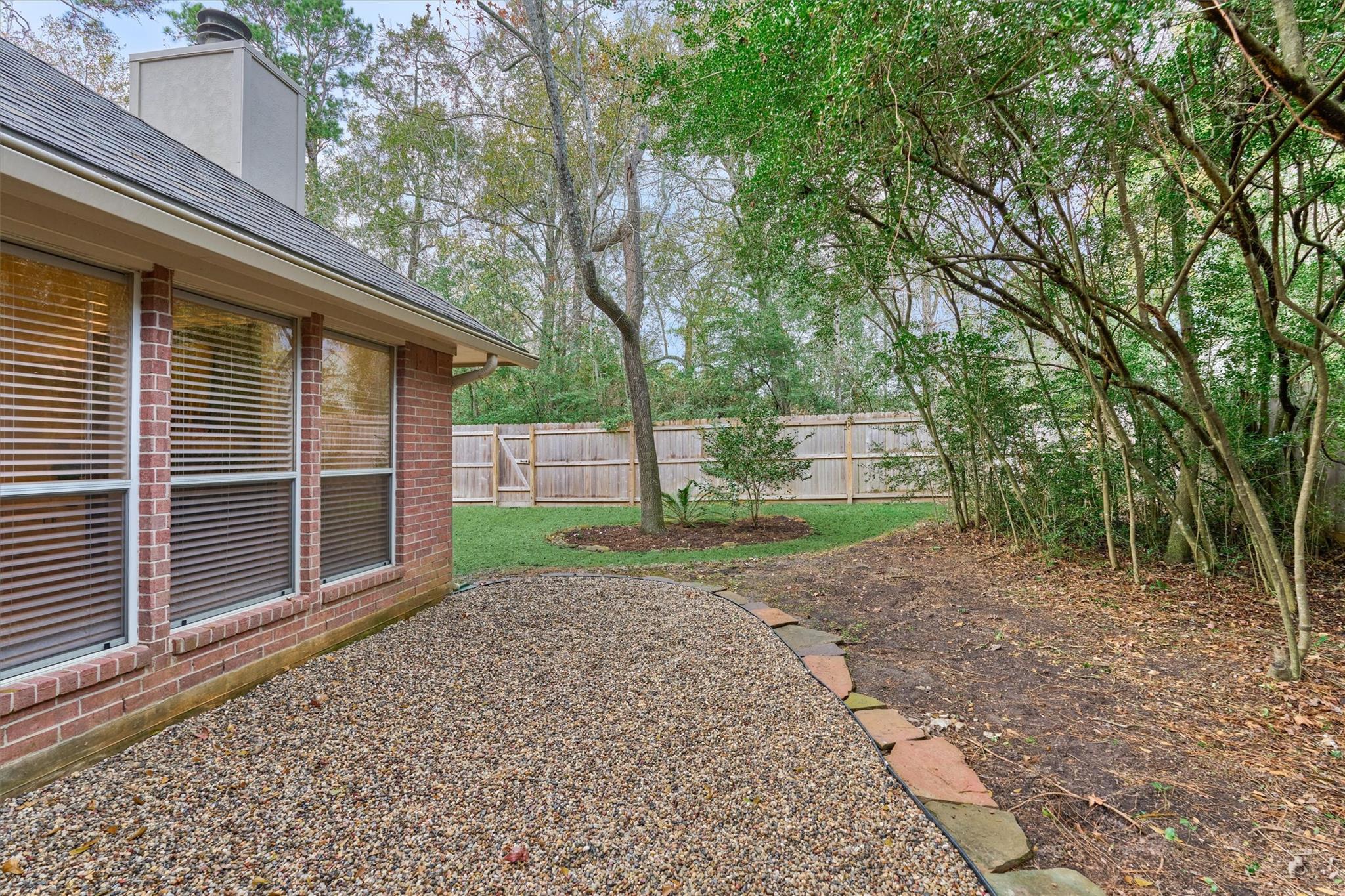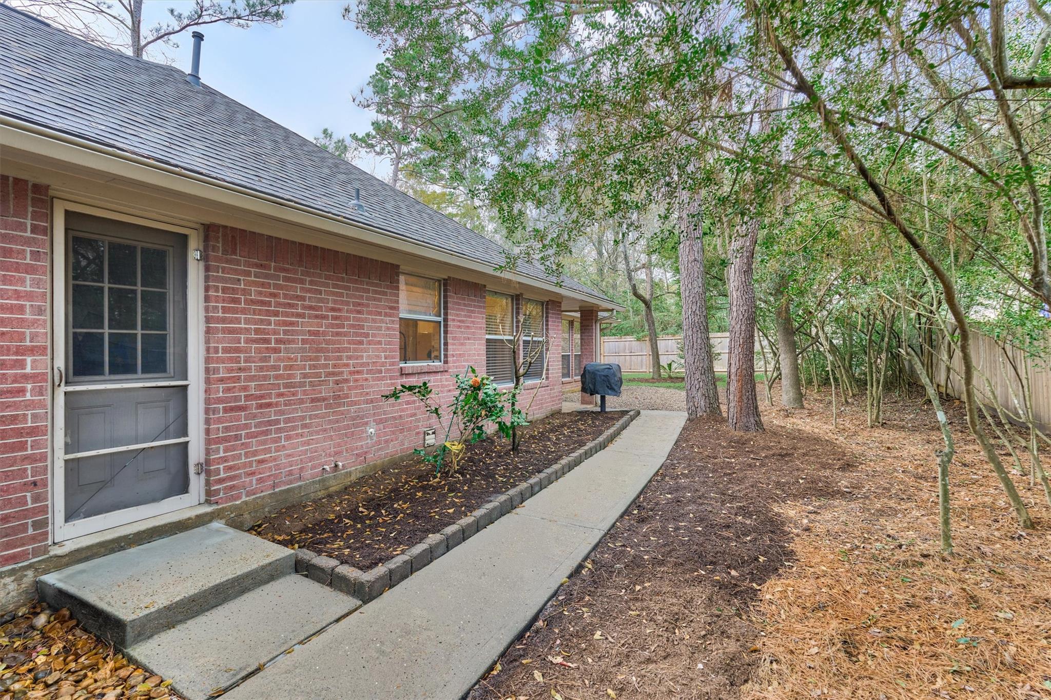 SPECIAL OPPORTUNITY FOR CHARMING PATIO HOME with exquisite updates throughout near Lake Woodlands, including: '25 roof, upgraded dbl pane windows, continuous wood-like tile flooring throughout, modern classic finishes throughout with close proximity to premier shops, dining, and entertainment in Town Center, Market Street & other popular venues! Situated on a private lot with green space as a backdrop (no rear neighbors), this one stands out from the rest with refreshed interior & exterior! Spacious den is anchored by a sleek fireplace surround that flows seamlessly into the dining rm w/a wall of windows overlooking a lush backyard retreat. Stylish island kitchen features abundant cabinetry, updated hardware & chef's planning area! Secluded owner's retreat offers sitting area & luxe bath w/dual vanities! Spacious secondary BR + enclosed study/versatile 3rd BR! Walk/ride to schools, parks, community pool! Minutes to I-45, medical district! Low taxes, no HOA, zoned to exemplary schools!