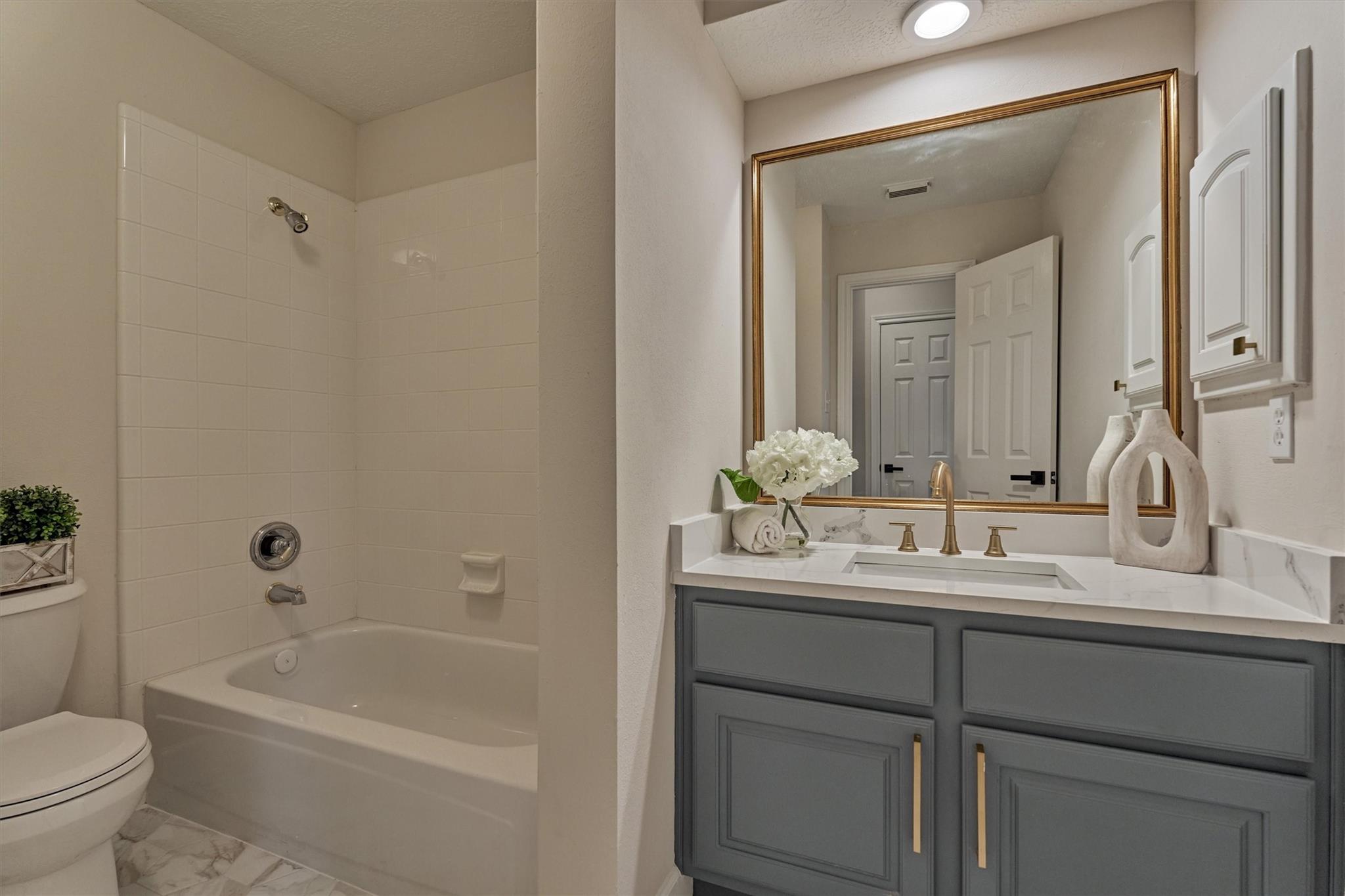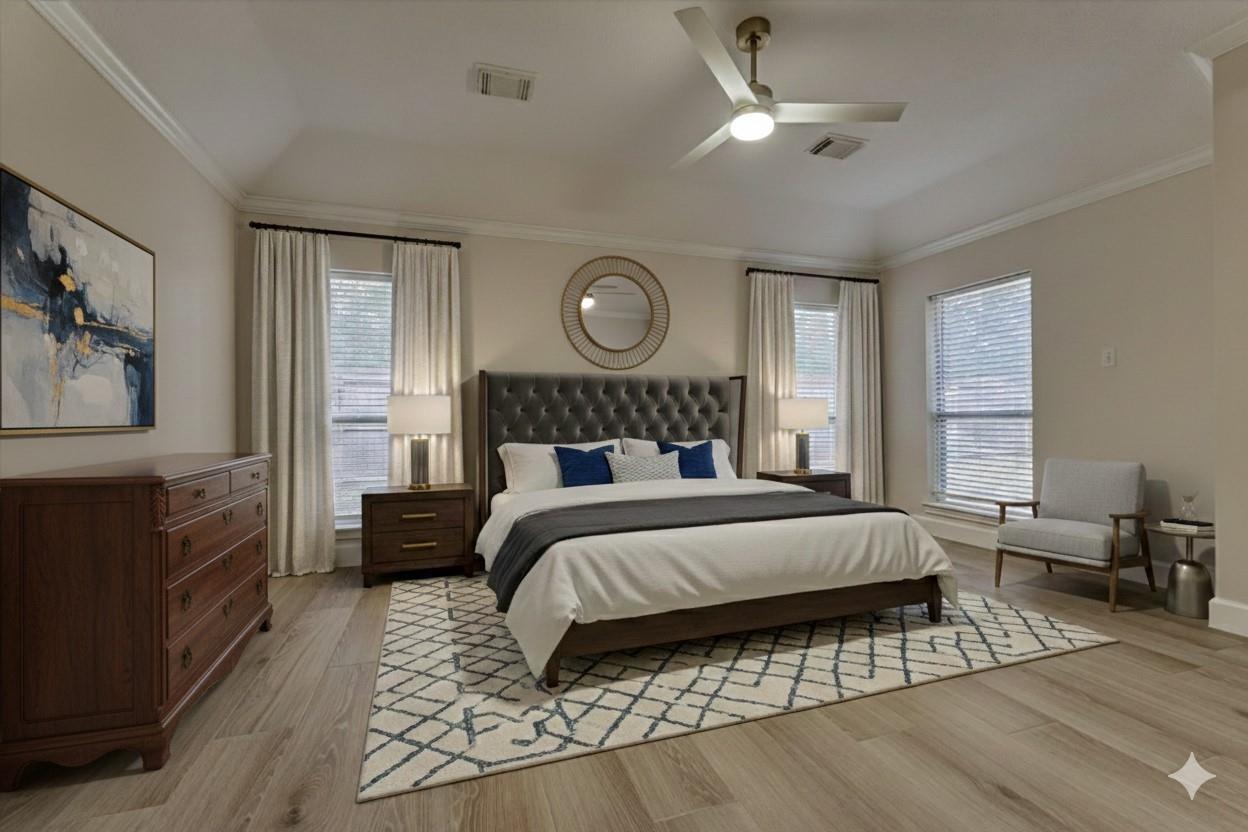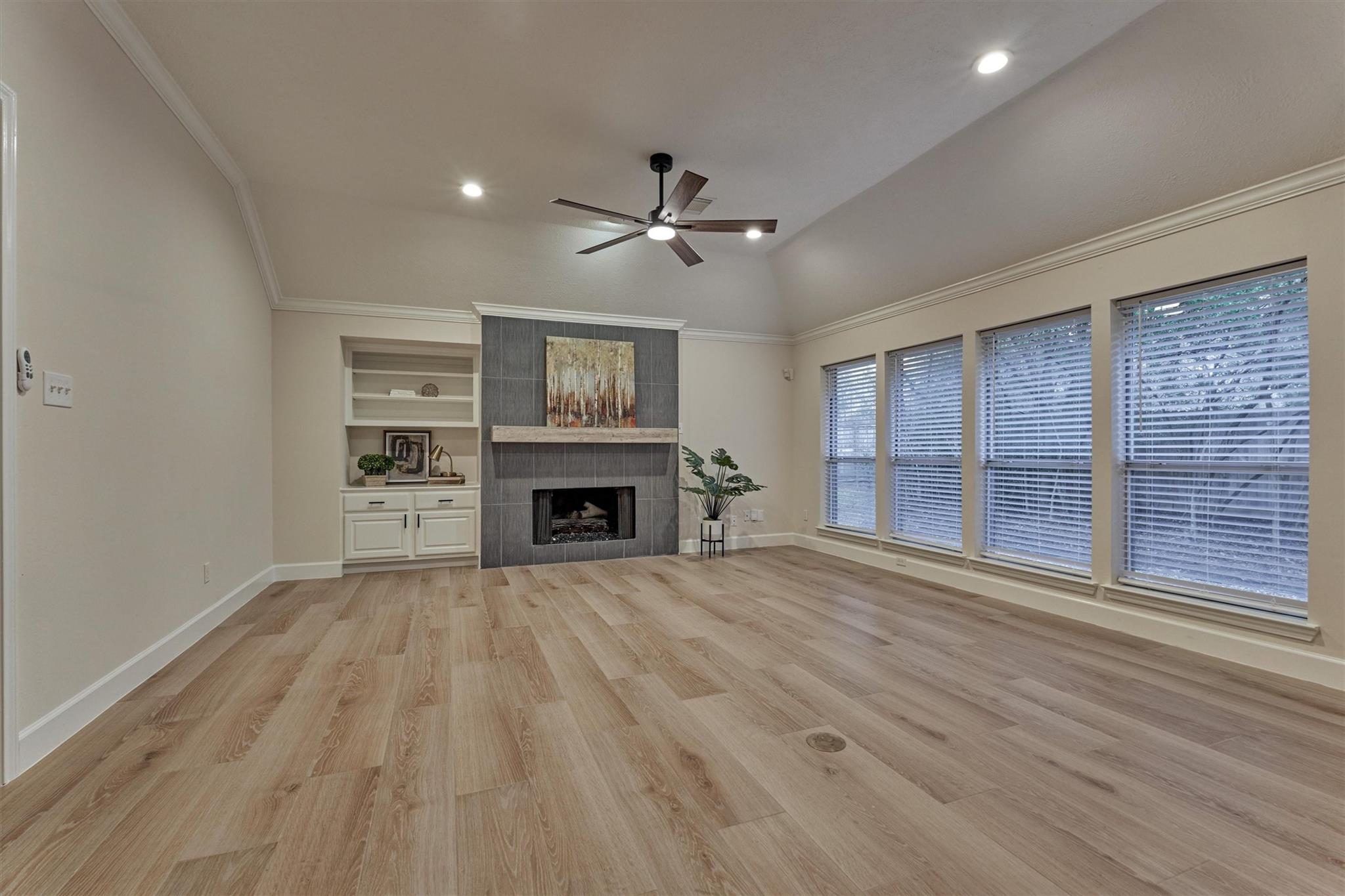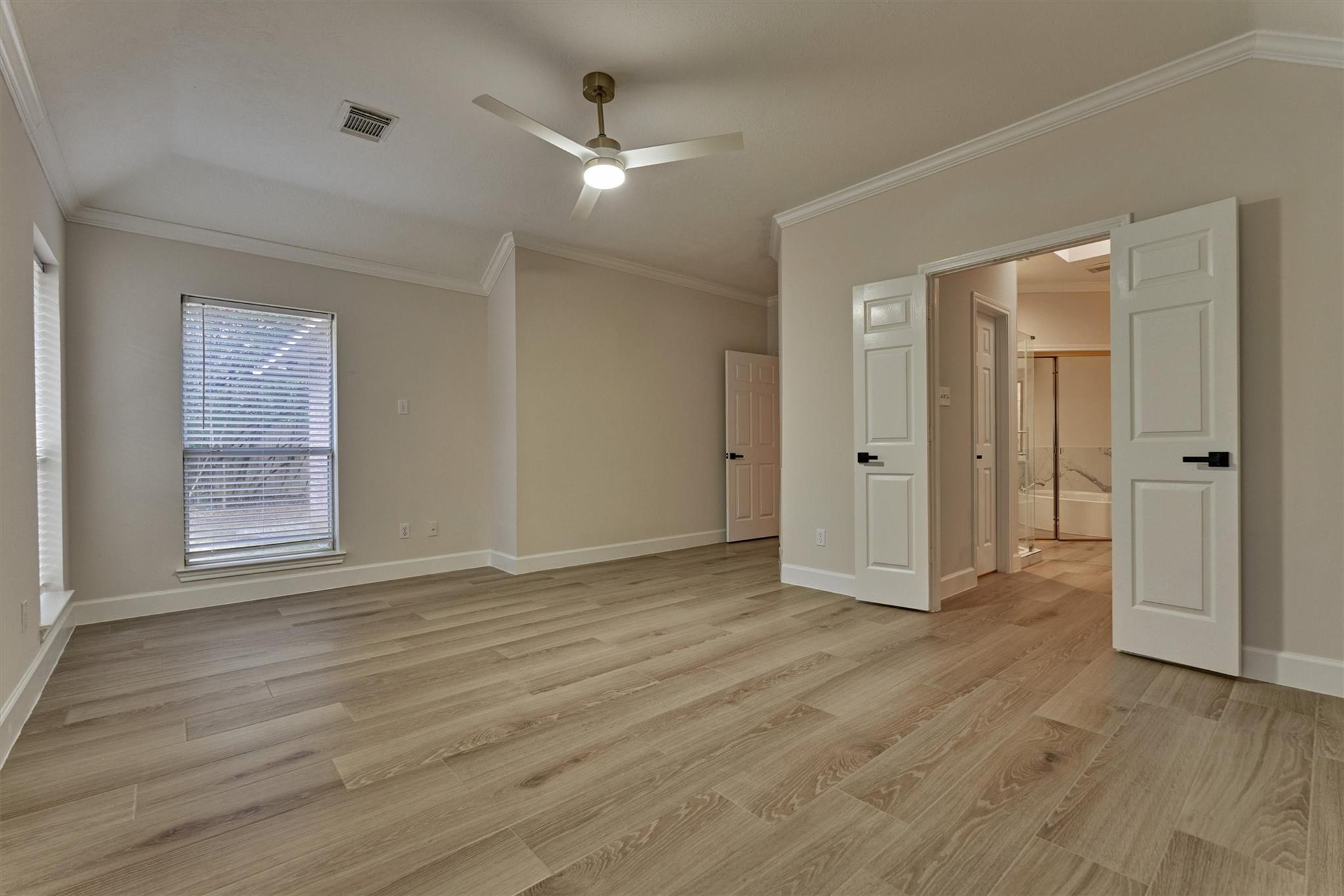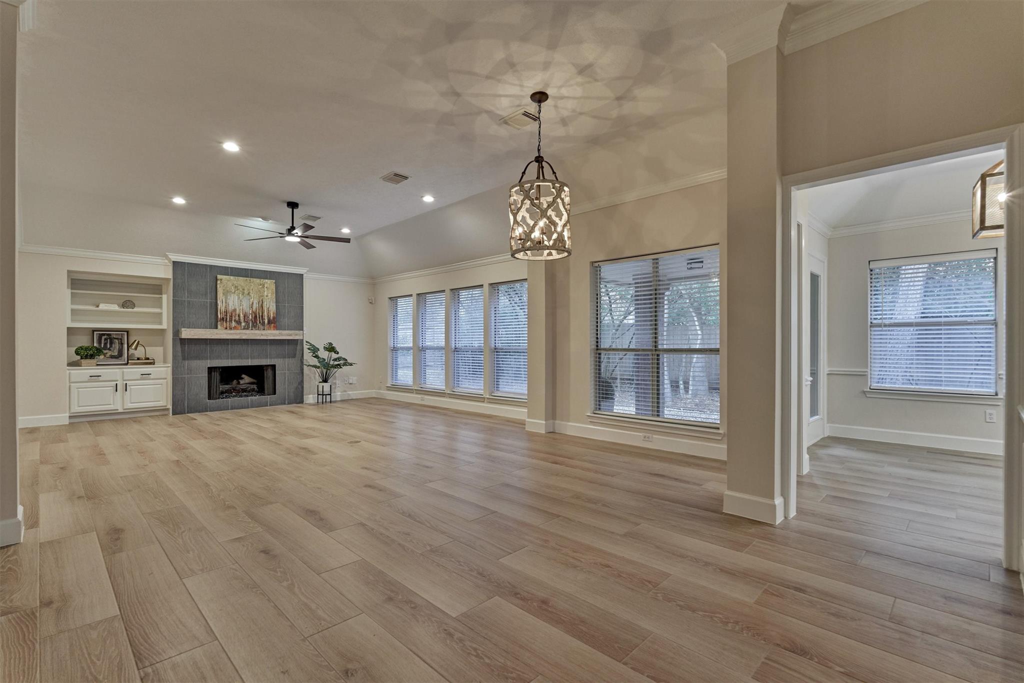 SPECIAL OPPORTUNITY FOR CHARMING PATIO HOME with exquisite updates throughout near Lake Woodlands, including: '25 roof, upgraded dbl pane windows, continuous wood-like tile flooring throughout, modern classic finishes throughout with close proximity to premier shops, dining, and entertainment in Town Center, Market Street & other popular venues! Situated on a private lot with green space as a backdrop (no rear neighbors), this one stands out from the rest with refreshed interior & exterior! Spacious den is anchored by a sleek fireplace surround that flows seamlessly into the dining rm w/a wall of windows overlooking a lush backyard retreat. Stylish island kitchen features abundant cabinetry, updated hardware & chef's planning area! Secluded owner's retreat offers sitting area & luxe bath w/dual vanities! Spacious secondary BR + enclosed study/versatile 3rd BR! Walk/ride to schools, parks, community pool! Minutes to I-45, medical district! Low taxes, no HOA, zoned to exemplary schools!