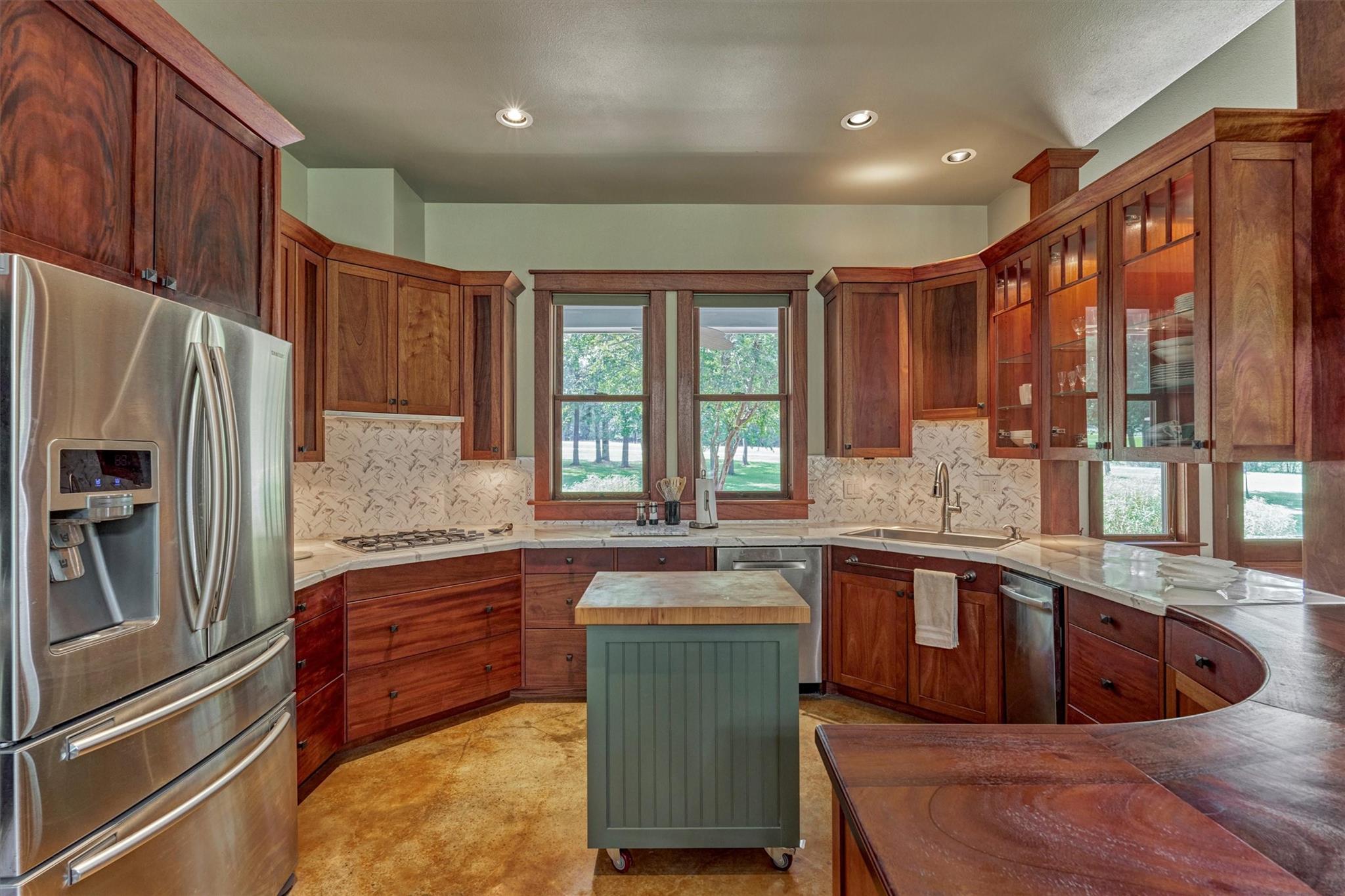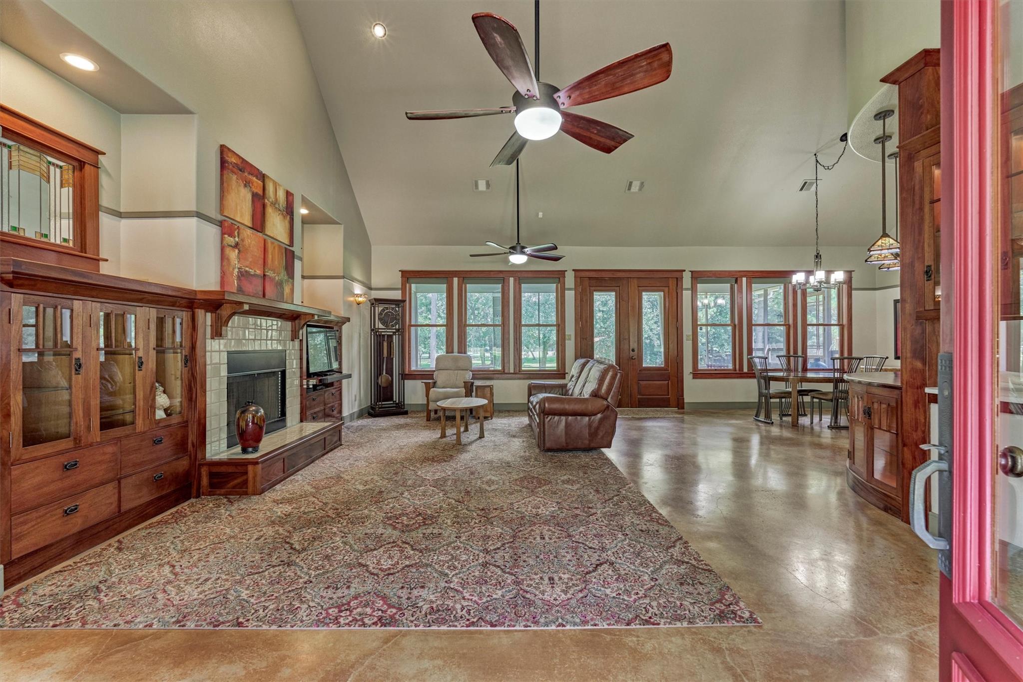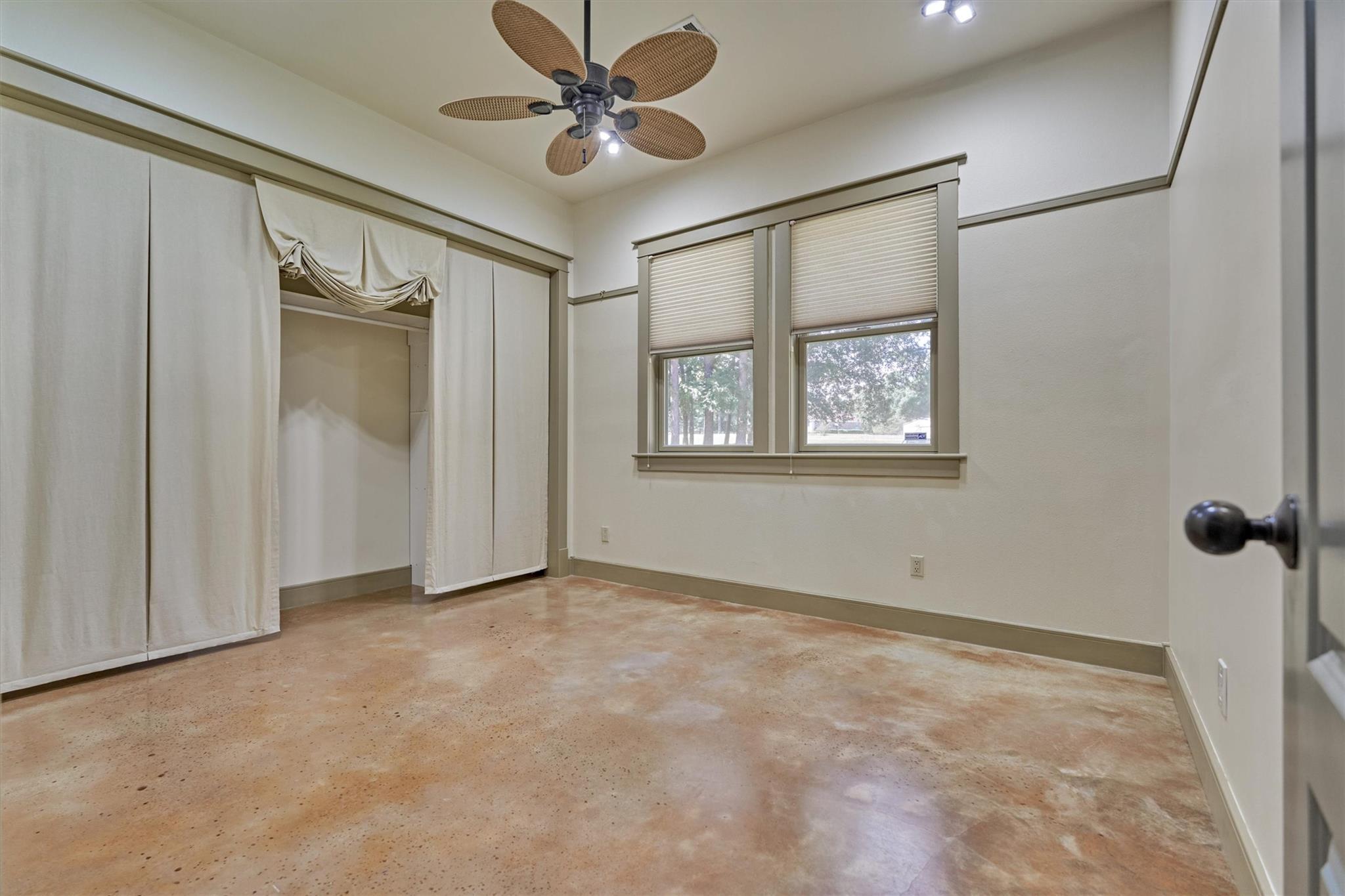 MODERN CRAFTSMAN-STYLE RETREAT on 3.128 sprawling acres in the equestrian community of River Park Ranch - minutes to Aggie Expwy/Houston amenities w/upscale country living w/access to scenic trails & 6-ac. lake! Drenched in natural light, this 1.5 custom boasts an open-concept floor plan w/wdws overlooking picturesque real estate, secluded primary suite & idyllic split plan w/2 spacious secondary BRs down + flex planning area, and loft-style suite upstairs w/kitchenette ('19)! Chef's kitchen boasts mahogany cabs, SS appls, huge walk-in pantry, concrete-coated counters, inviting den w/wood-burning FP! Owner's retreat w/sitting area, dual vanities, XL walk-in shwr, plumbed for optnl tub! Geo-thermal HVAC, 7 wells w/420' aquifer! Encased openings w/8' doors + awesome storage! Savor screened patio w/serene views, 2+ car garage, 34x16 workshop, barn & peaceful creek behind property & battery backup system in case of power outage! W/D included! Perfect harmony of privacy, function & charm!
