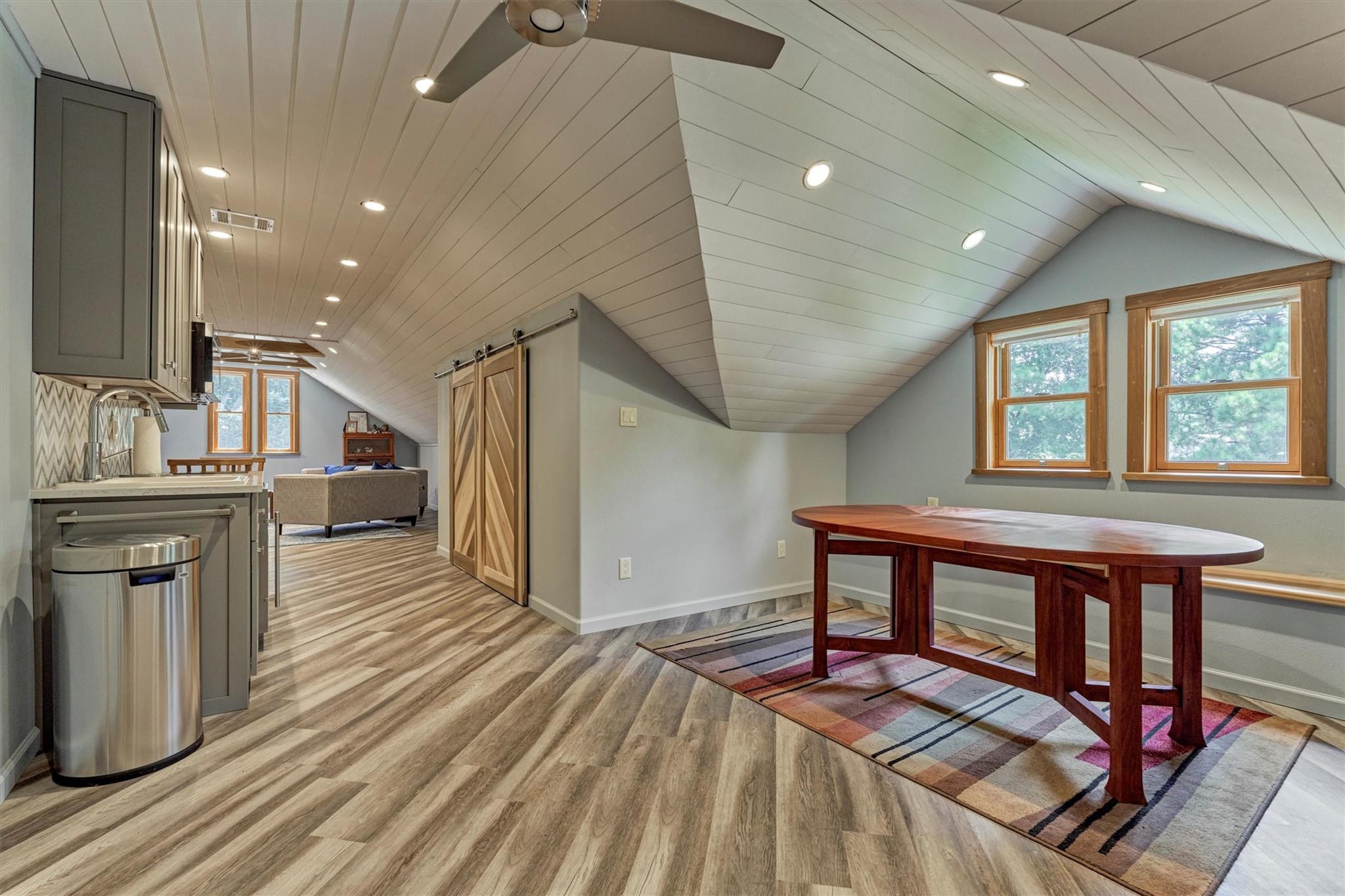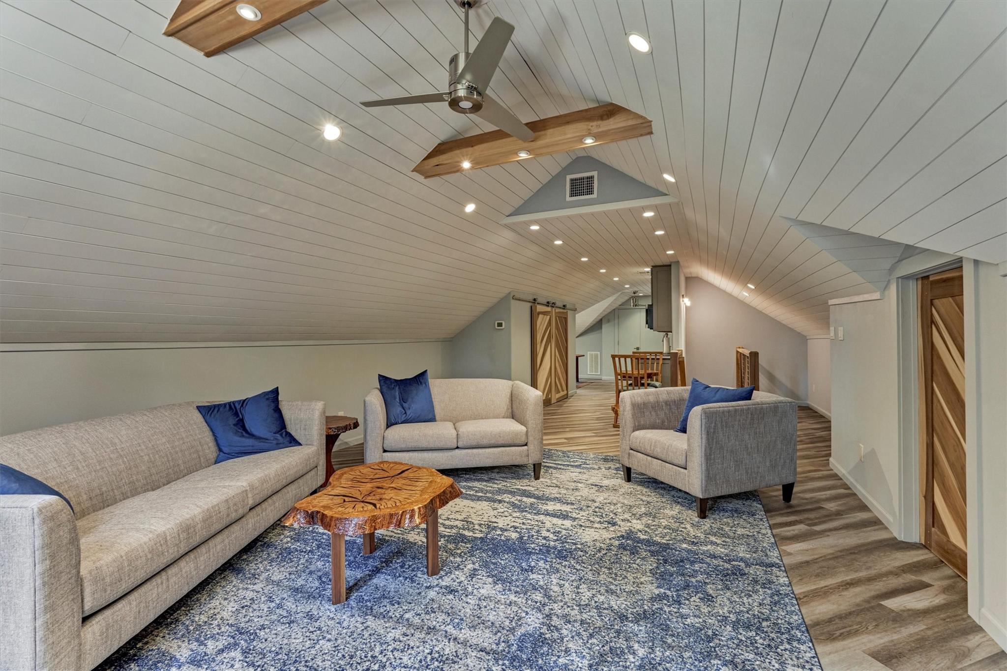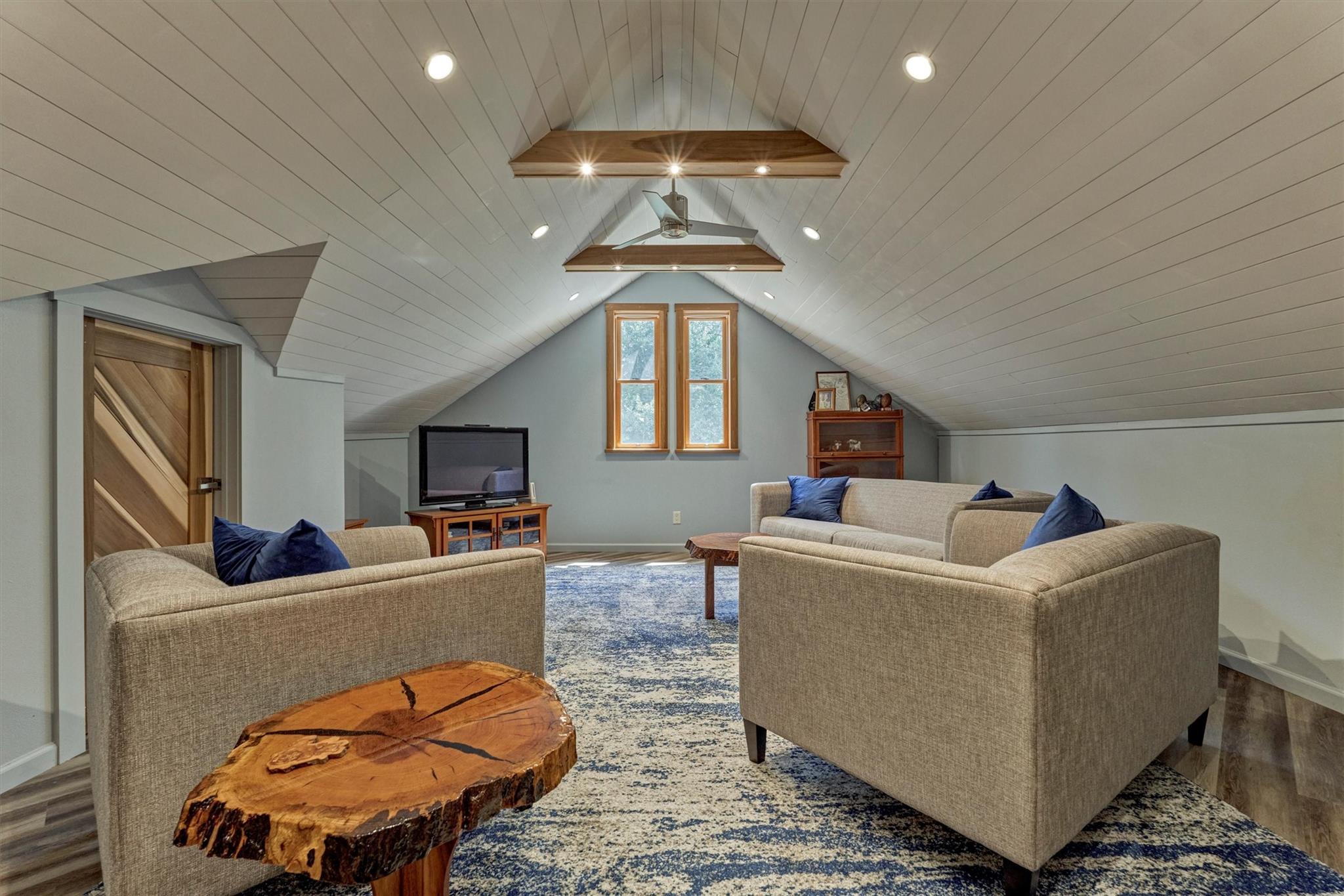 MODERN CRAFTSMAN-STYLE RETREAT on 3.128 sprawling acres in the equestrian community of River Park Ranch - minutes to Aggie Expwy/Houston amenities w/upscale country living w/access to scenic trails & 6-ac. lake! Drenched in natural light, this 1.5 custom boasts an open-concept floor plan w/wdws overlooking picturesque real estate, secluded primary suite & idyllic split plan w/2 spacious secondary BRs down + flex planning area, and loft-style suite upstairs w/kitchenette ('19)! Chef's kitchen boasts mahogany cabs, SS appls, huge walk-in pantry, concrete-coated counters, inviting den w/wood-burning FP! Owner's retreat w/sitting area, dual vanities, XL walk-in shwr, plumbed for optnl tub! Geo-thermal HVAC, 7 wells w/420' aquifer! Encased openings w/8' doors + awesome storage! Savor screened patio w/serene views, 2+ car garage, 34x16 workshop, barn & peaceful creek behind property & battery backup system in case of power outage! W/D included! Perfect harmony of privacy, function & charm!
