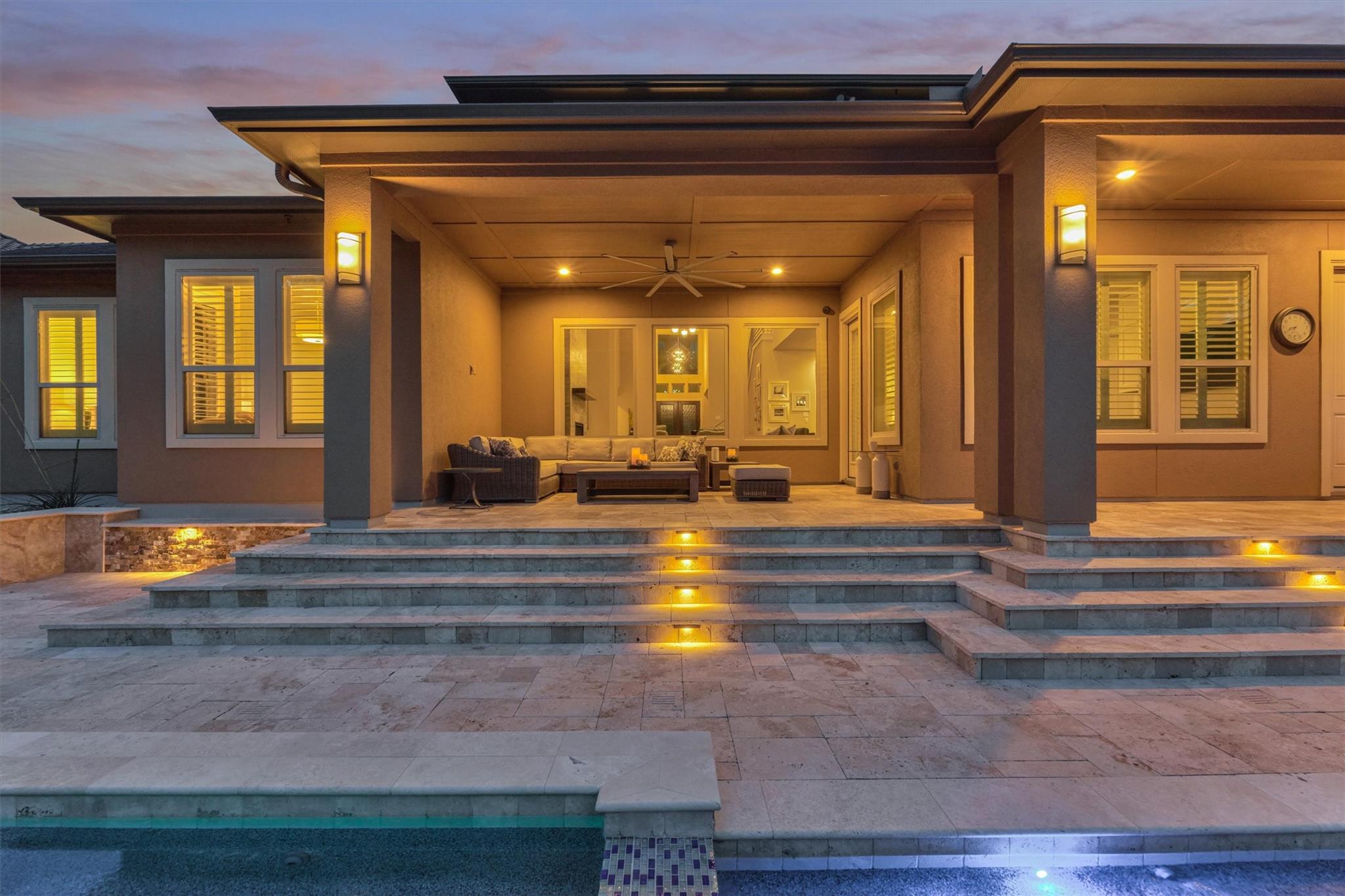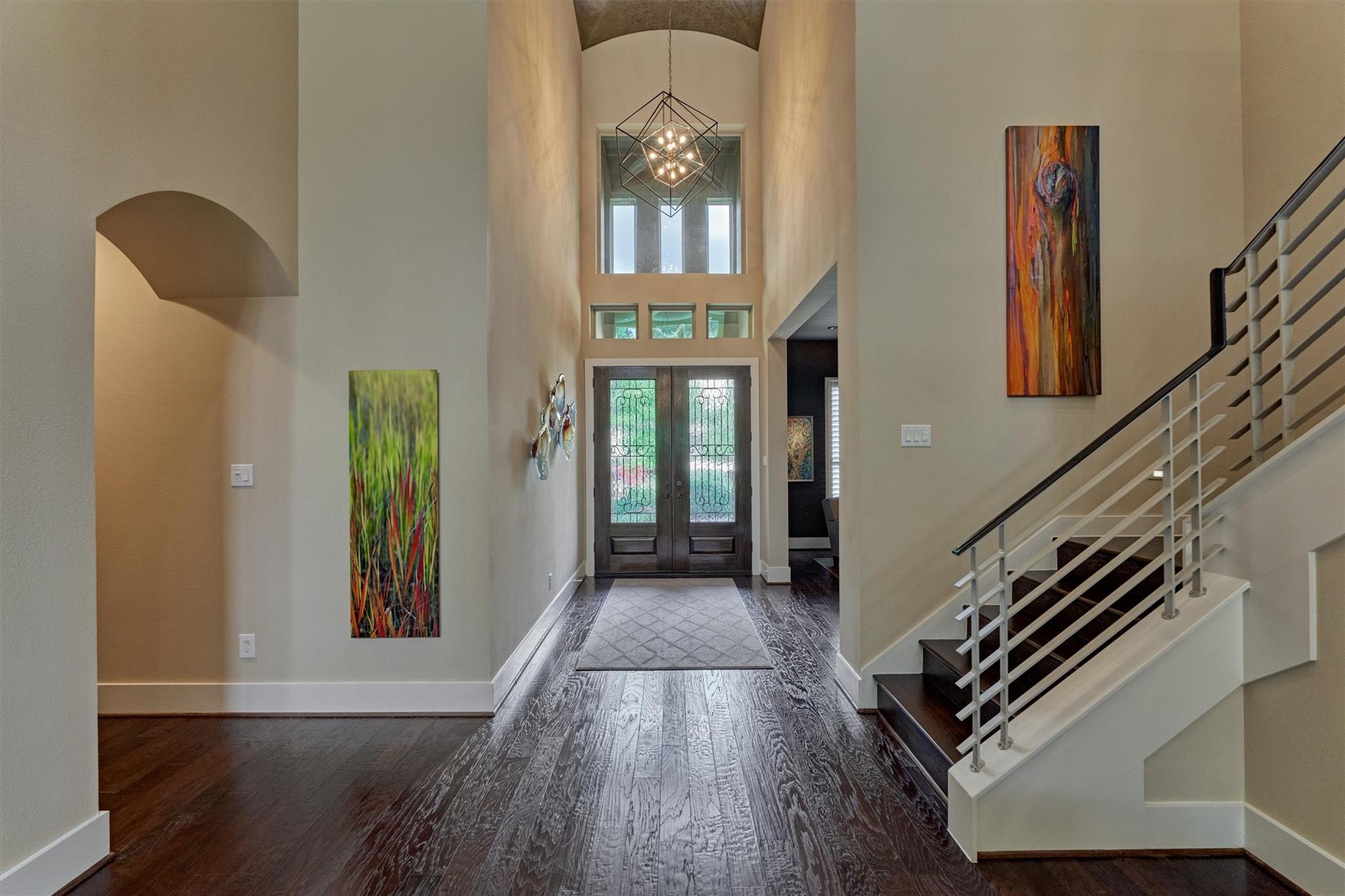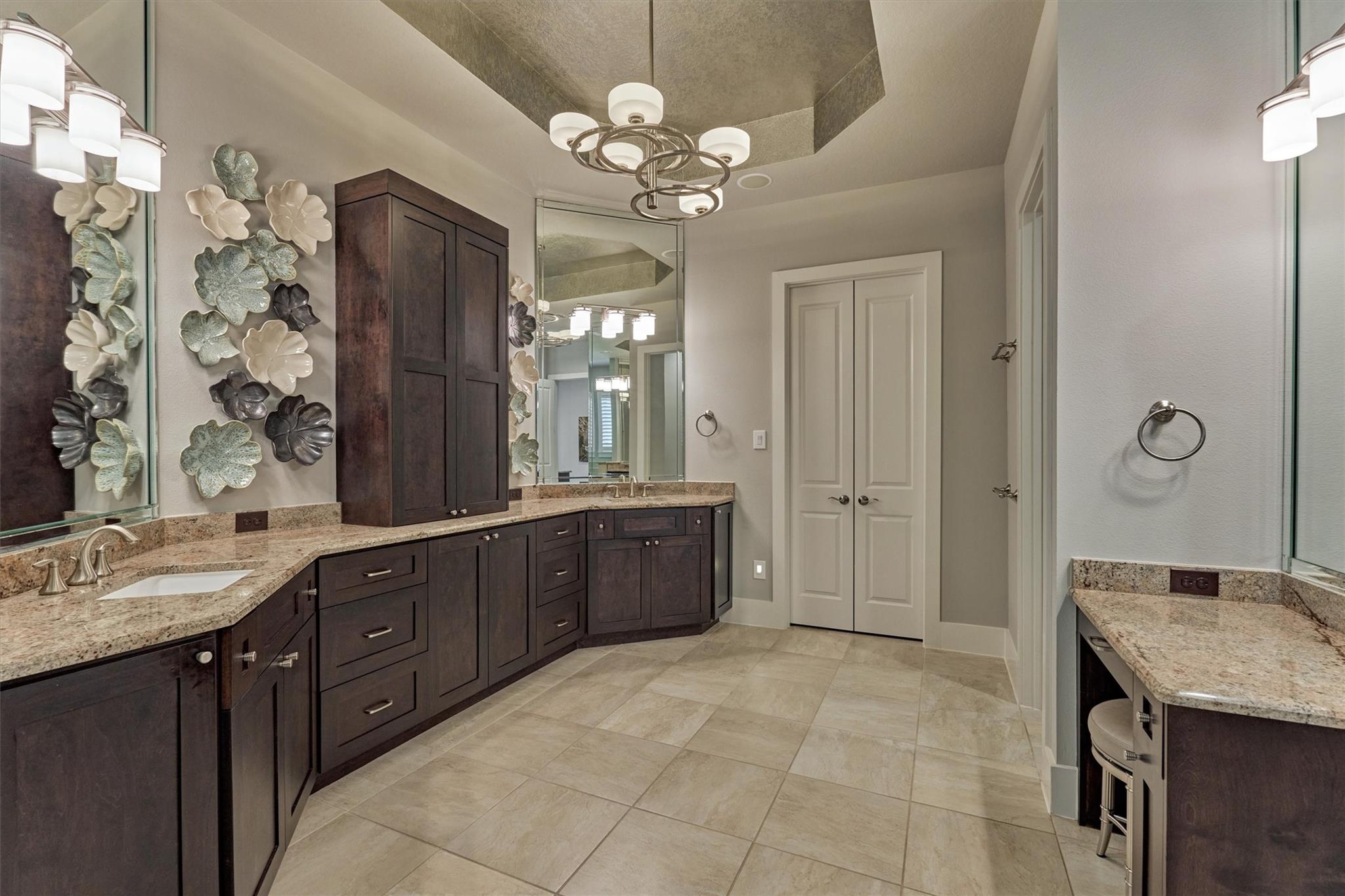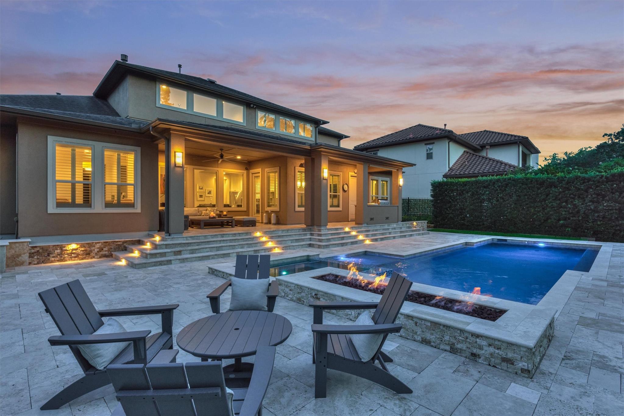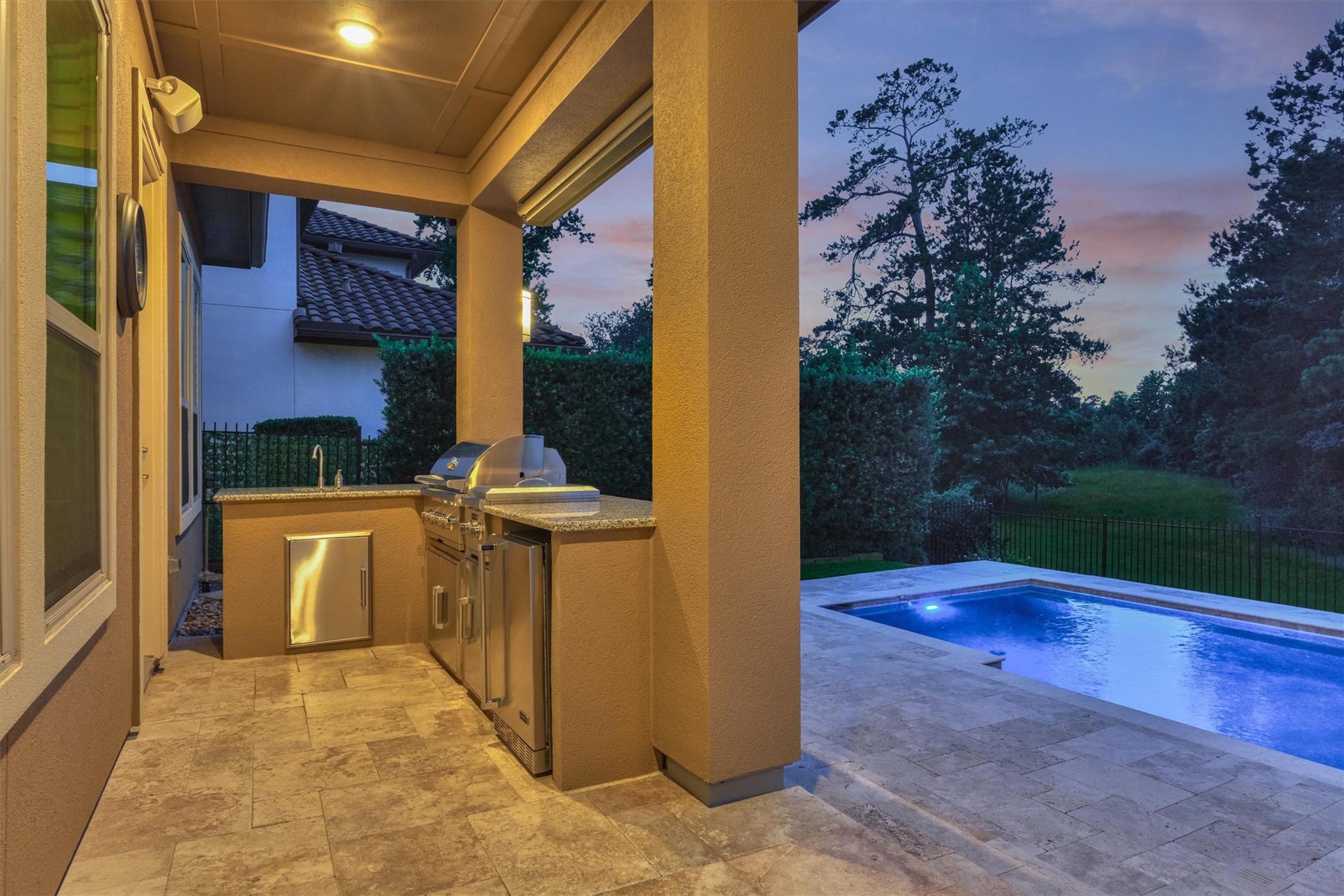 THE TRIFECTA OF REAL ESTATE - a well-appointed custom home on a breathtaking, tree-lined lot with vista views, and immaculately maintained! Boasting a modern transitional style with timeless neutral interior, clean architectural lines, industrial stair railing, 2 BRs downstairs incl. secluded guest suite & enviable owners retreat w/vestibule entry, coffee bar, lavish bath w/dual sinks, vanity area, plush cabs, dramatic pop-up ceiling, huge walk-in shower, soaking tub, oversized closet! Versatile dining/parlor room w/pass-thru butlers pantry to chef's kitchen w/oversized block island, bar seating, large breakfast area & den w/2-story travertine fireplace surround overlooking a resort-like setting w/pool & spa, outdoor kitchen & dedicated pool bath! Media room has extra insulation & multiple speaker zones inside & out, study w/bonus storage room, updated lighting/fixtures, customized mud/utility room, more! All en-suite BRs including three up w/large game room! High & dry! A must-see!