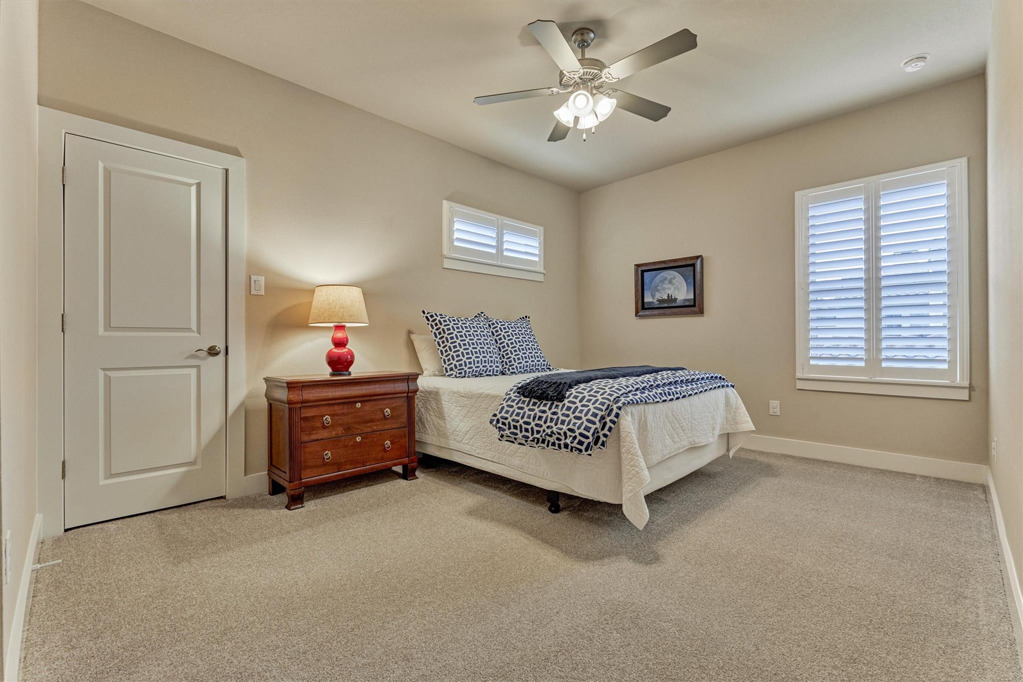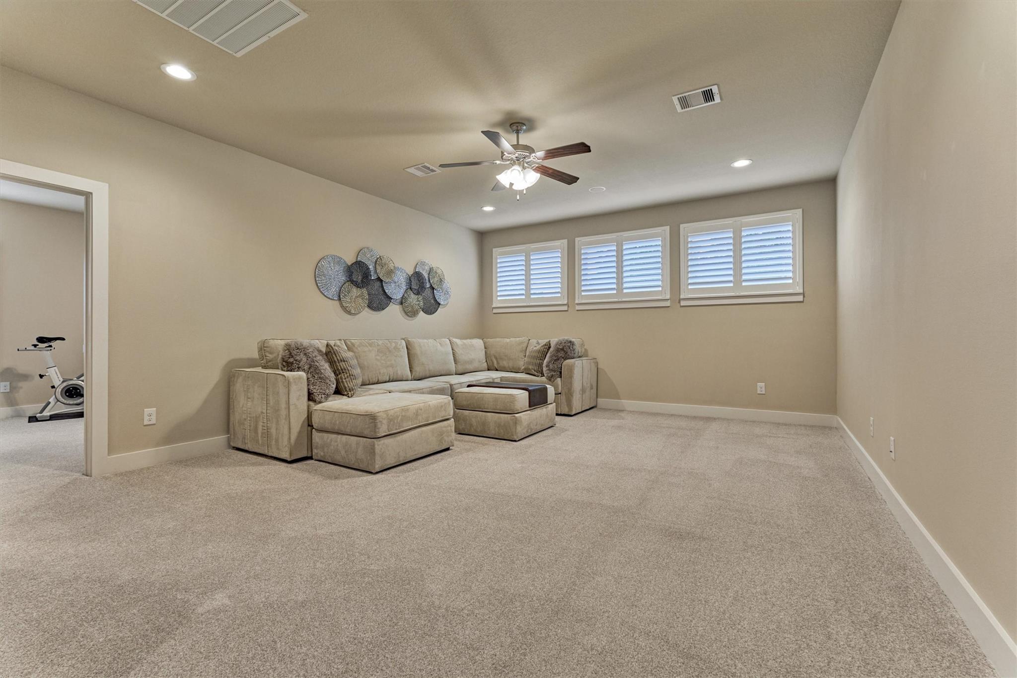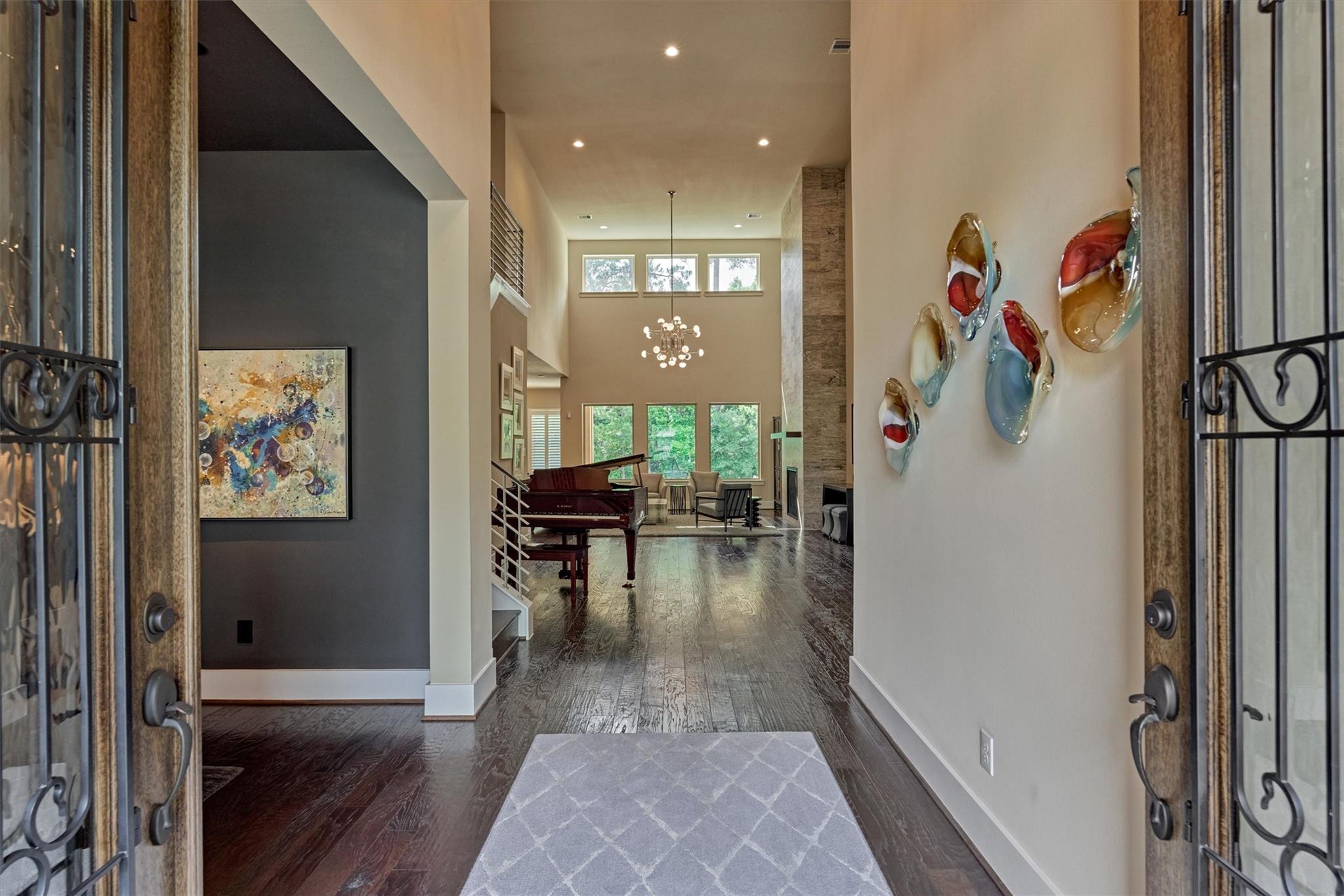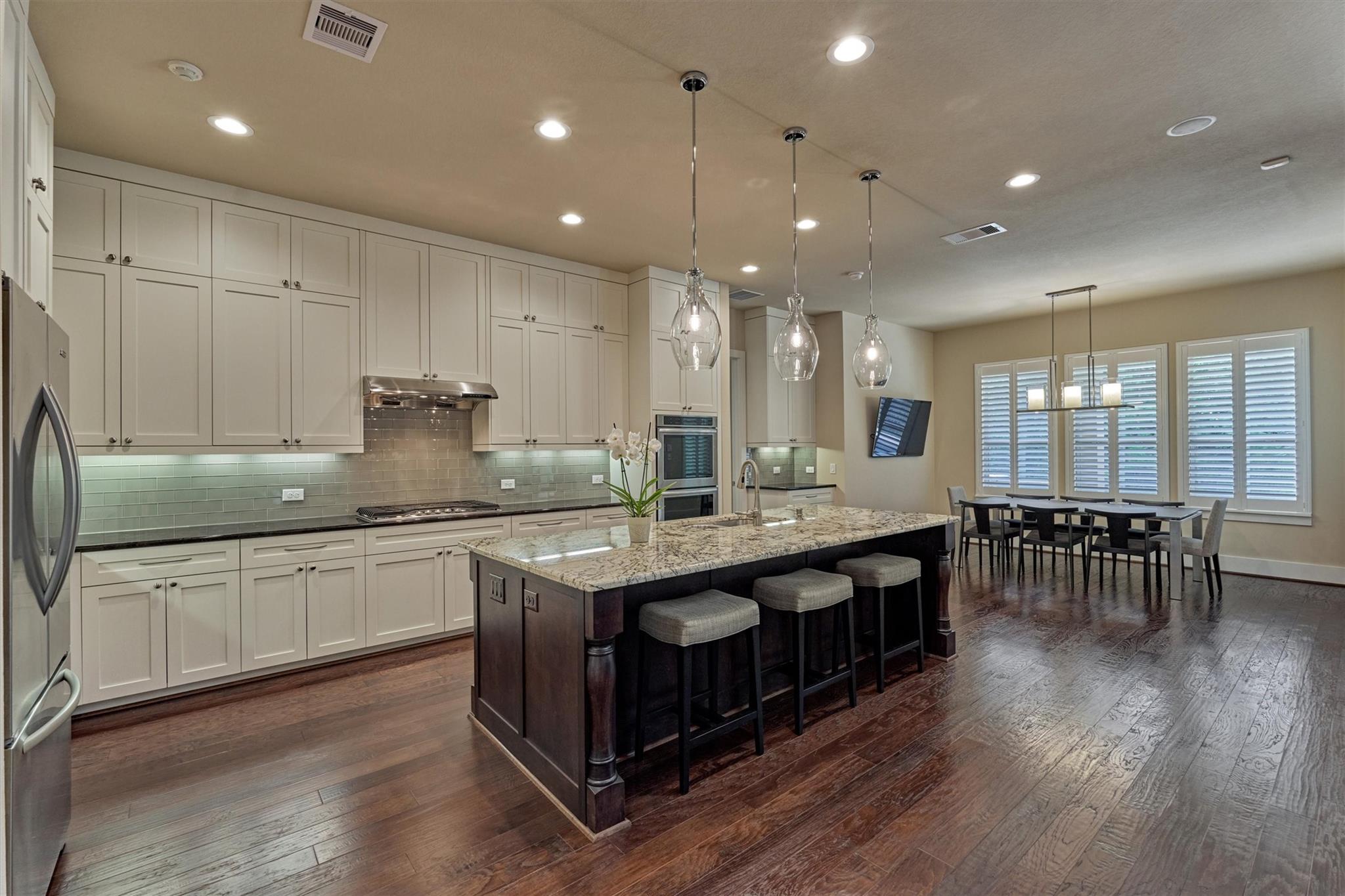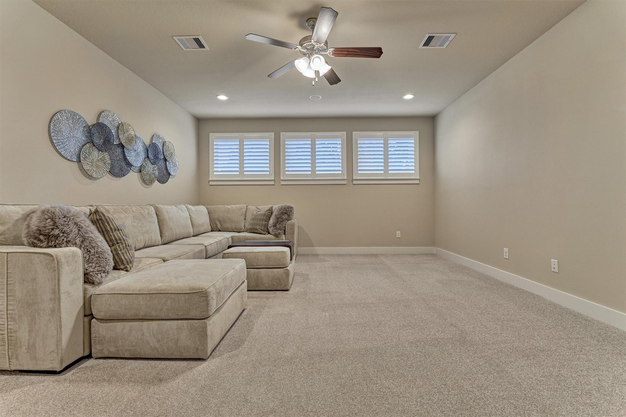 THE TRIFECTA OF REAL ESTATE - a well-appointed custom home on a breathtaking, tree-lined lot with vista views, and immaculately maintained! Boasting a modern transitional style with timeless neutral interior, clean architectural lines, industrial stair railing, 2 BRs downstairs incl. secluded guest suite & enviable owners retreat w/vestibule entry, coffee bar, lavish bath w/dual sinks, vanity area, plush cabs, dramatic pop-up ceiling, huge walk-in shower, soaking tub, oversized closet! Versatile dining/parlor room w/pass-thru butlers pantry to chef's kitchen w/oversized block island, bar seating, large breakfast area & den w/2-story travertine fireplace surround overlooking a resort-like setting w/pool & spa, outdoor kitchen & dedicated pool bath! Media room has extra insulation & multiple speaker zones inside & out, study w/bonus storage room, updated lighting/fixtures, customized mud/utility room, more! All en-suite BRs including three up w/large game room! High & dry! A must-see!