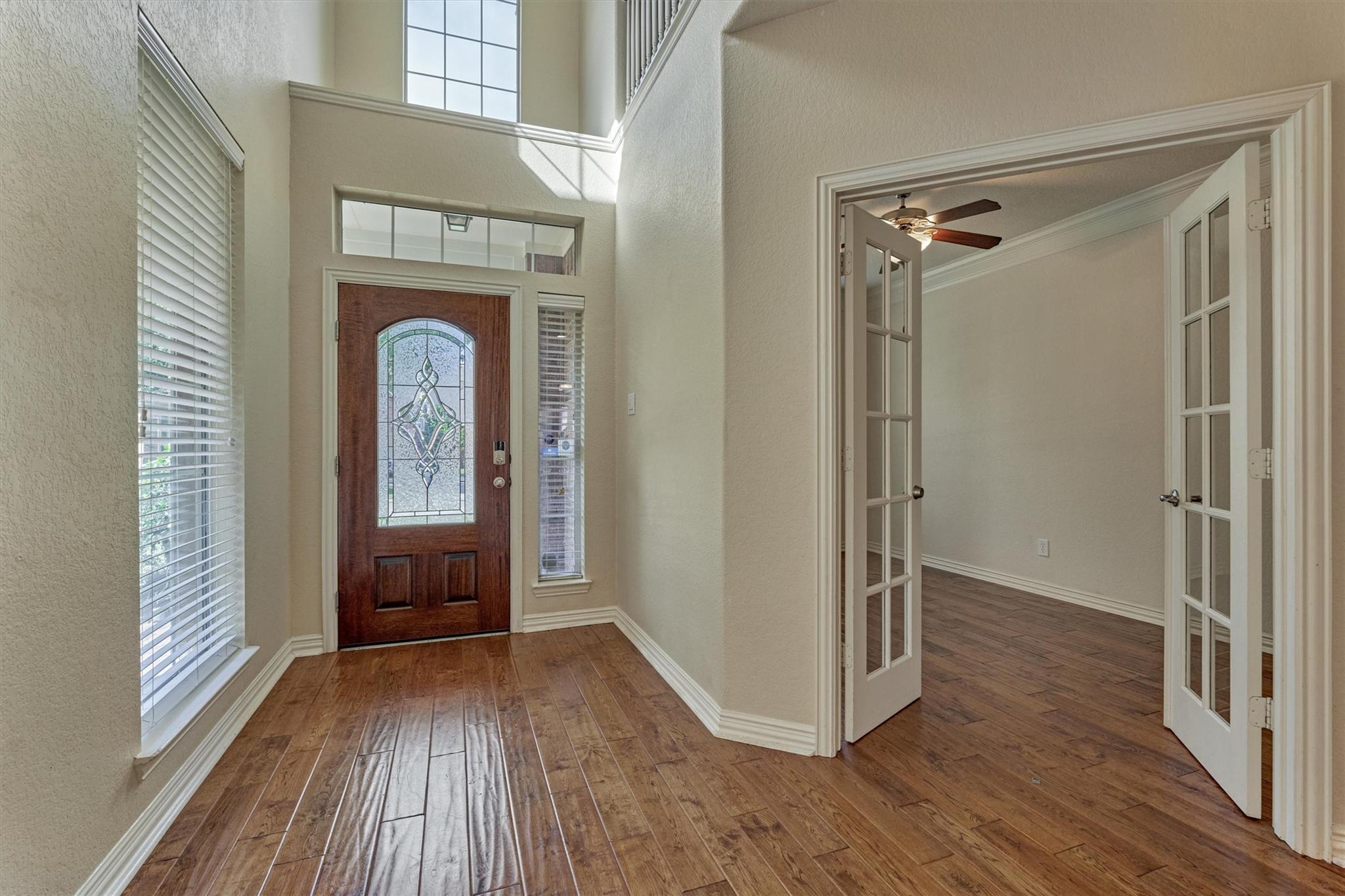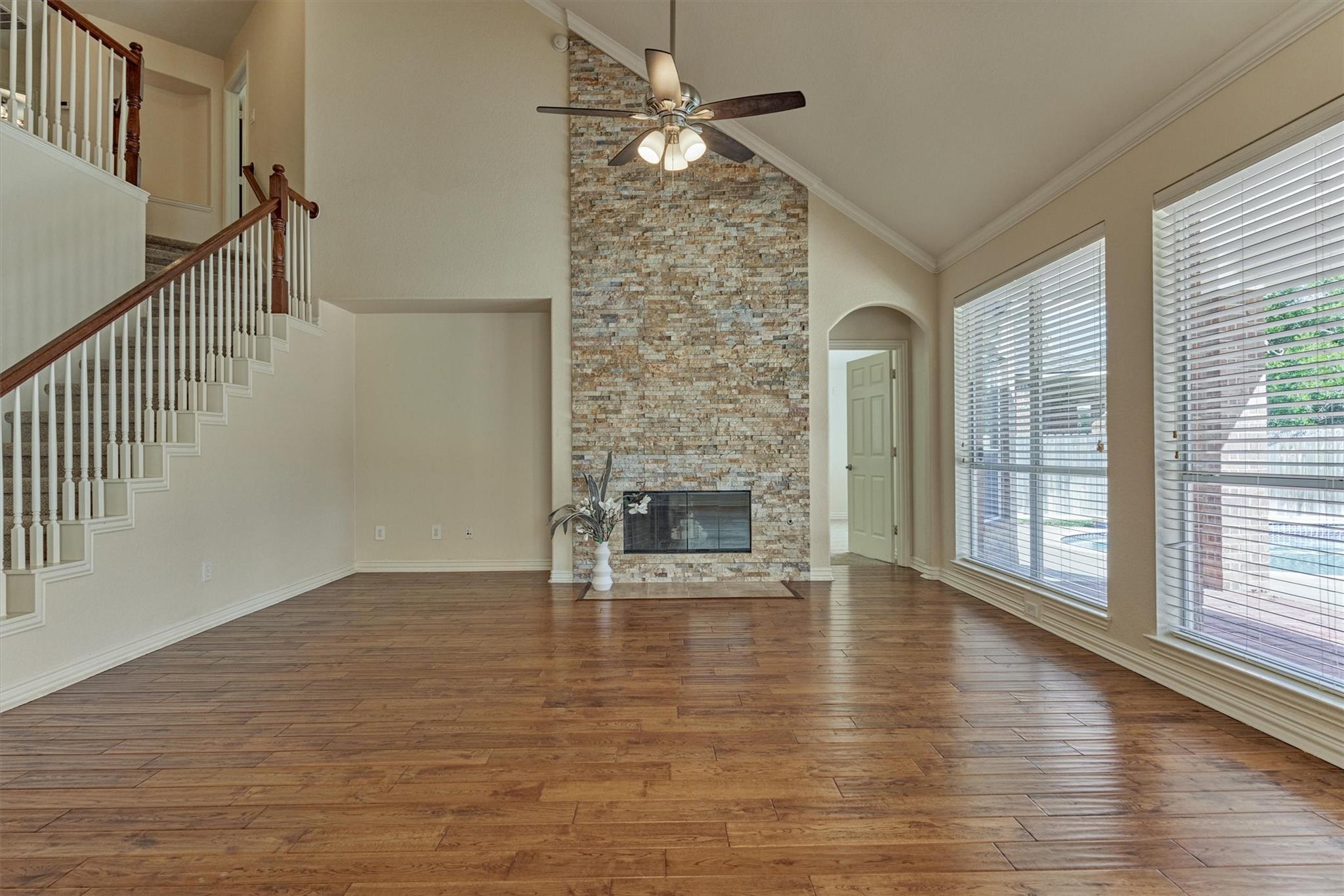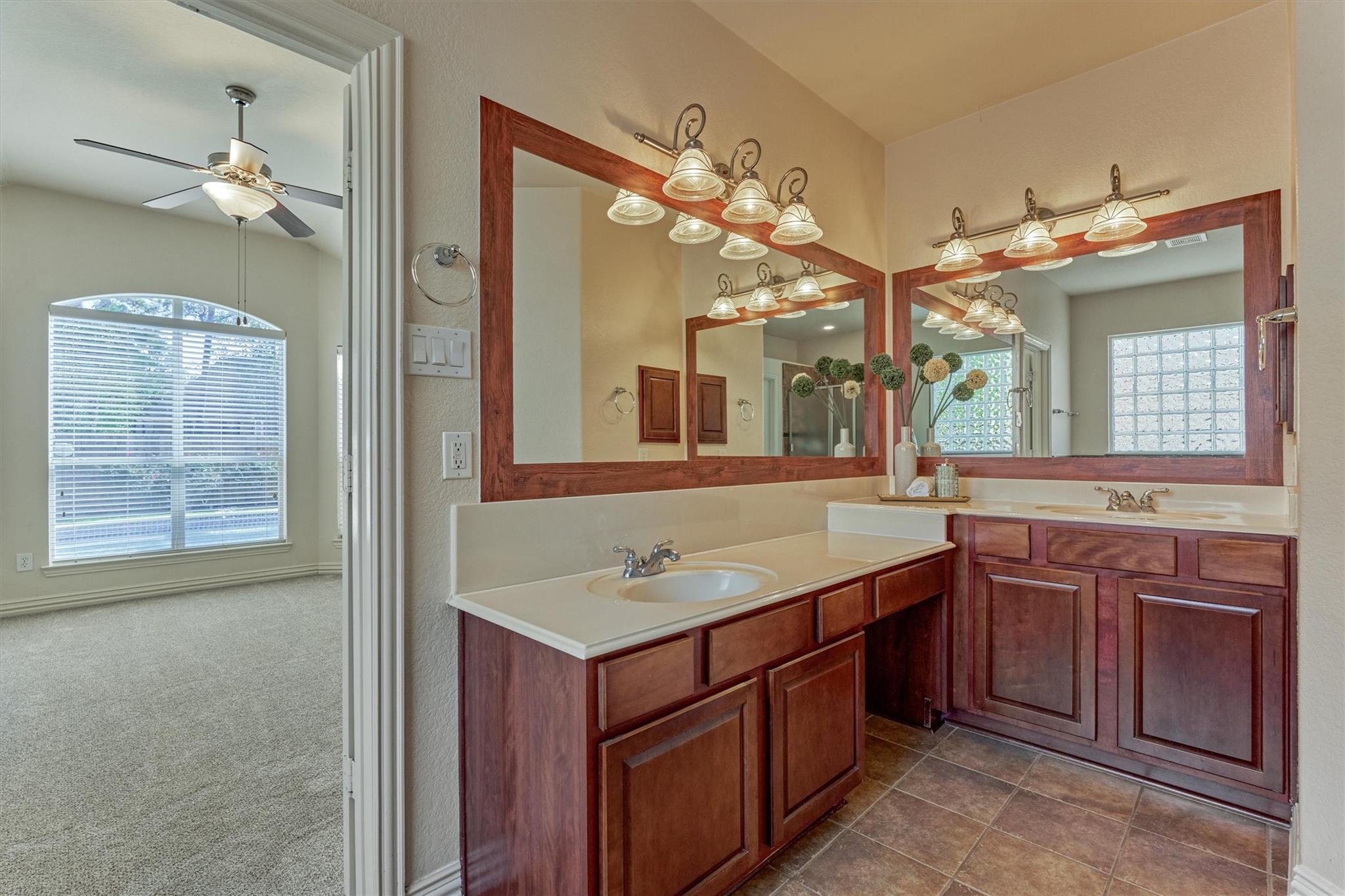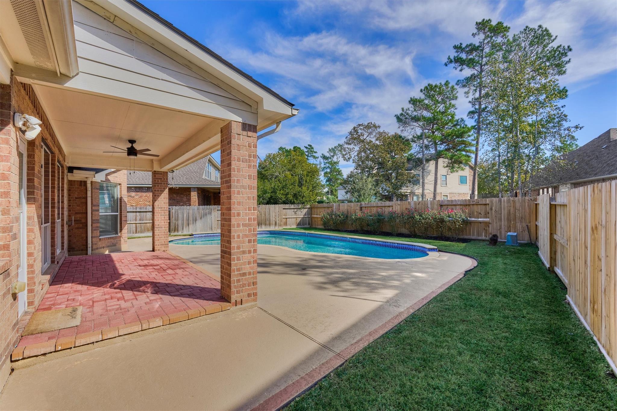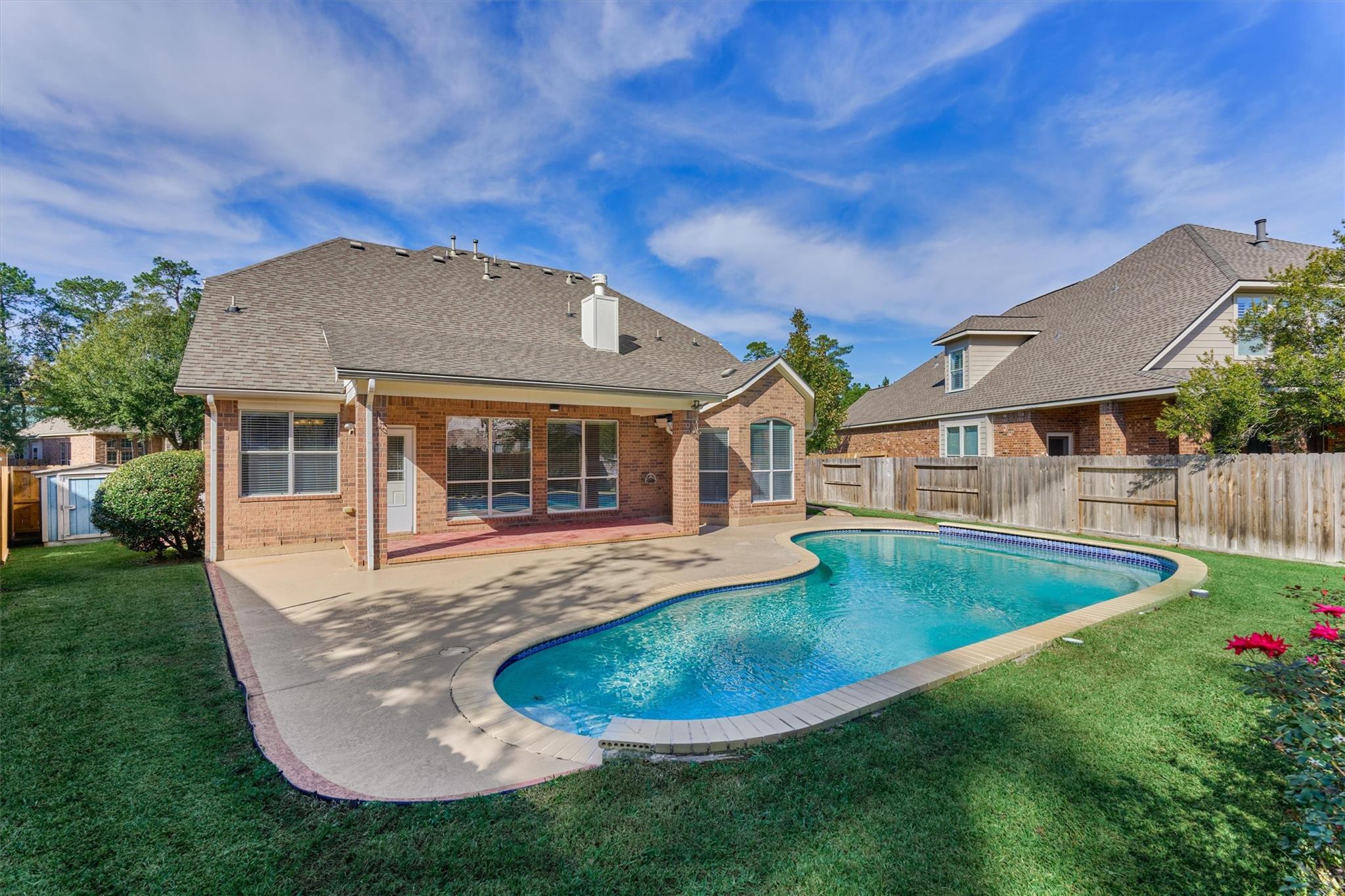 SPECIAL OPPORTUNITY in coveted Sterling Ridge neighborhood w/all the talking points: generous 5 BR/3.5 BTH floorplan shines with NEW paint, NEW carpet, recently replaced cooktop, microwave and dishwasher, 2019 roof, front/back ring cameras & R/W/D included, true 3-car garage, sparkling pool & zoned to top-ranked Deretchin Elem! Step inside to an inviting open-concept layout w/granite island kitchen, stainless appliances, formal dining room, and seamless flow into the den boasting soaring ceilings and a customized fireplace w/floor-to-ceiling tumbled stone surround. Secluded primary suite offers dual sinks, soaking tub, separate shower & huge closet. An enclosed study provides the perfect work-from-home space while the upstairs game rm and spacious secondary BRs offer exceptional flex space! Enjoy outdoor living on the covered patio overlooking mature landscaping and a private pool setting. Thoughtful updates, abundant natural light, convenient to shops, dining, library, more! Hi & dry!