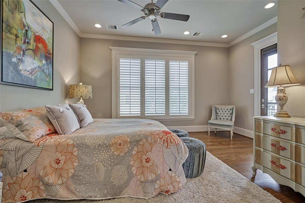 Exquisite home is situated on coveted, oversized corner lot in "the Garden District"/East Shore neighborhood just one block from scenic Ellipse Park! Walk along the lake shore or to nearby Hughes Landing, Market Street for premium retail and dining! Classic all brick exterior with cast stone and Spanish wood columns. 2-story home incorporates split levels for mud room off garage and game room! Signature wrap-around veranda and balcony, grand foyer, extensive millwork with encased openings, steep baseboards, layers of crown molding, plantation shutters, hardwoods throughout, high ceilings, more! Main floor includes open floor plan with gourmet kitchen showcasing 48" Wolf range, premium refrigerator, abundant storage and prep area, plus elaborate wet bar/serving area for entertaining, wall of transom framed windows frame the den and dining room, and executive study! Luxe master suite with private closets on 2nd level with guest suite, and spacious secondary bedrooms - all with balcony access! A must-see!