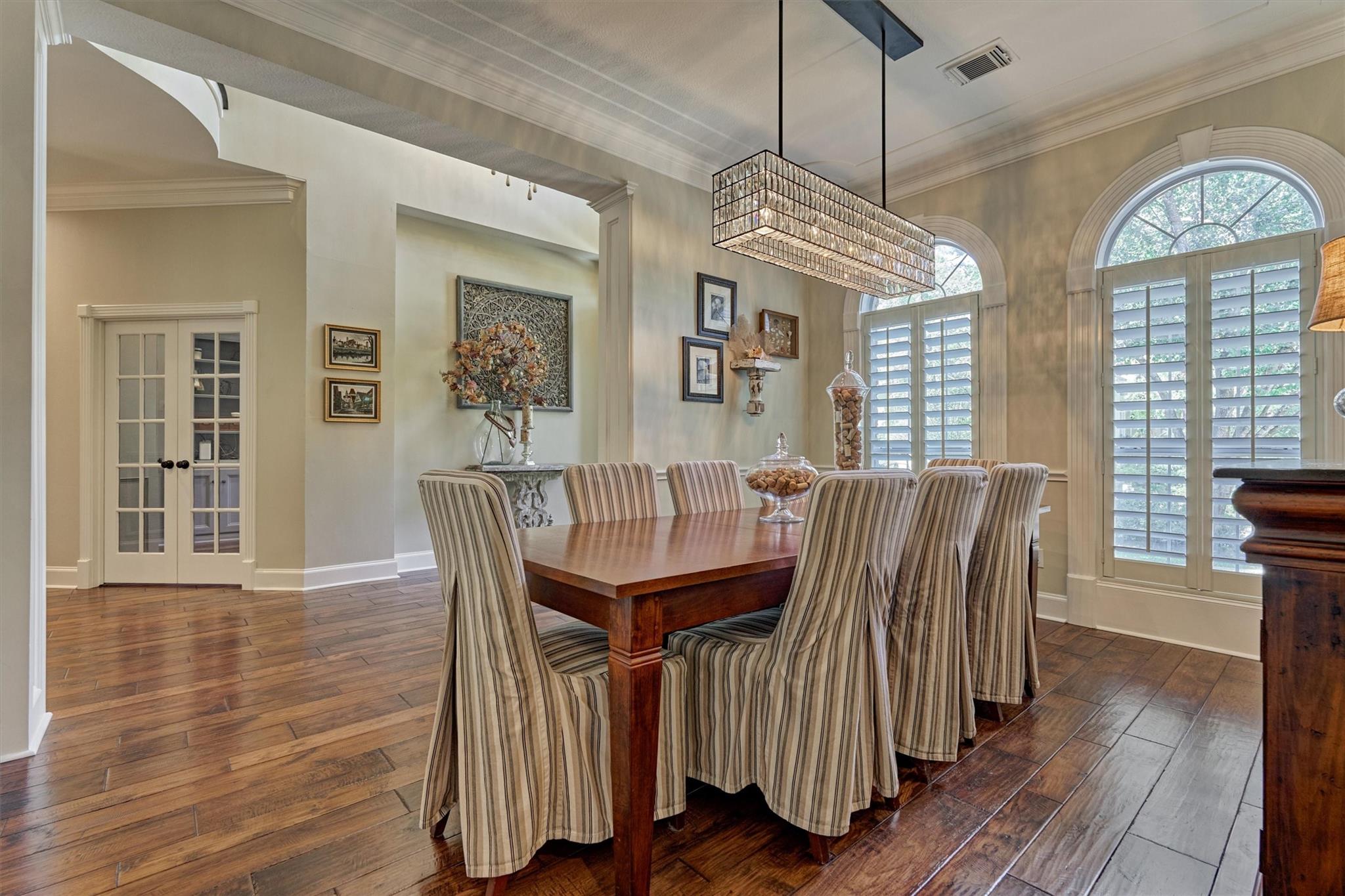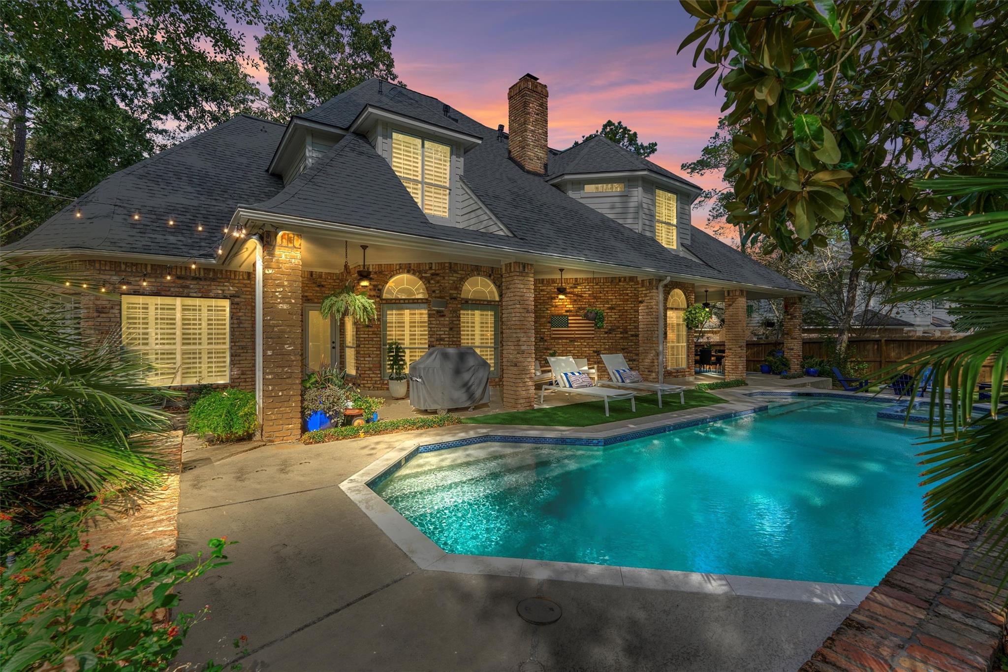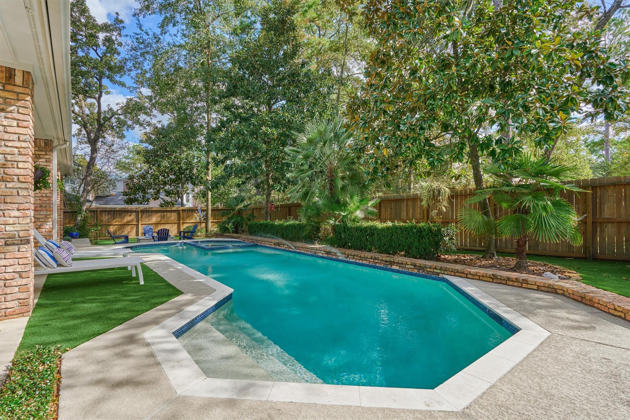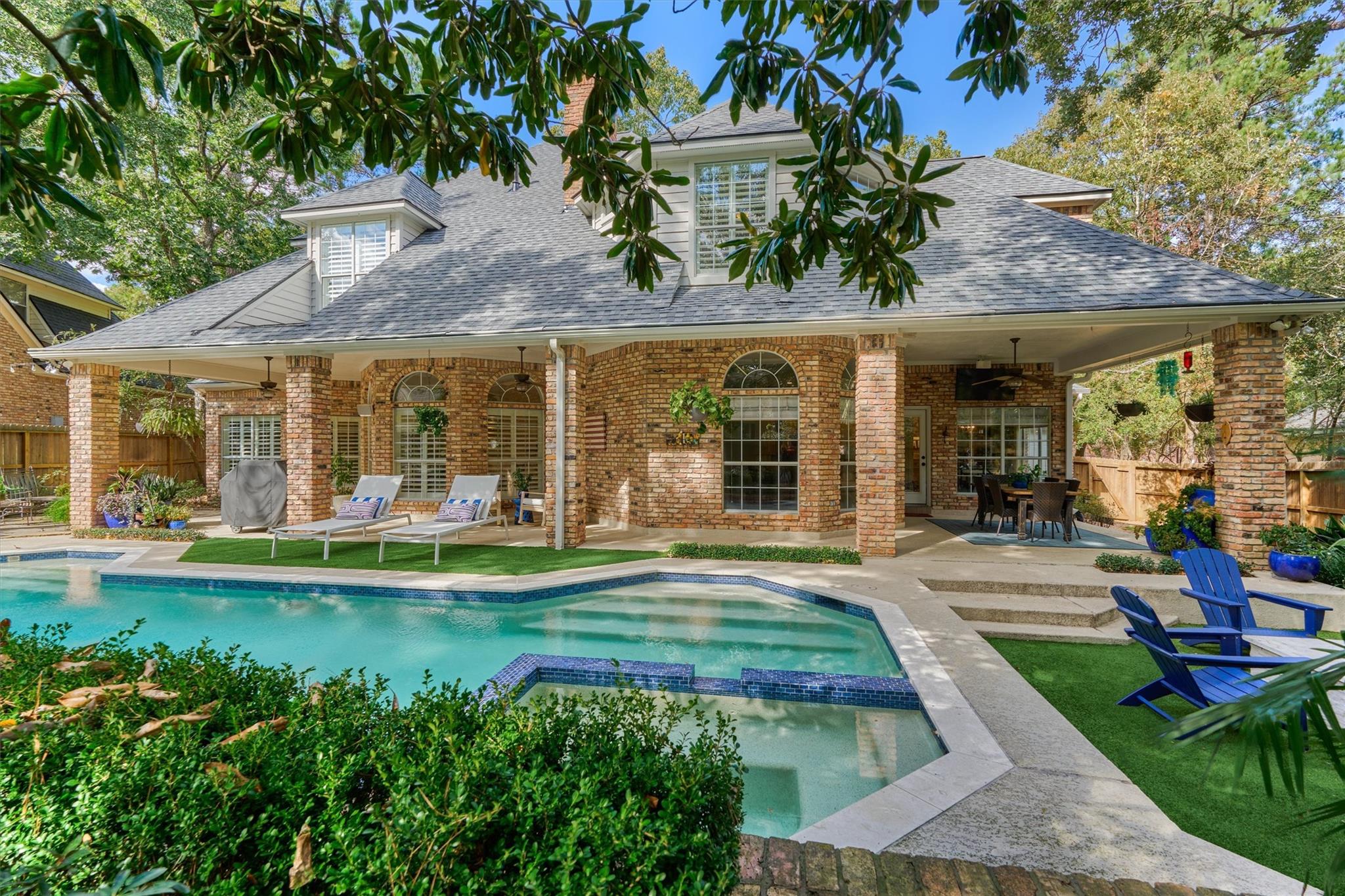 A QUINTESSENTIAL SOUTHERN CLASSIC - this 5 BR custom boasts a BRAND NEW roof & downstairs AC unit, designer updates throughout, a private backyard oasis w/sparkling Pebble Tec pool, fire pit, artificial turf for pets, covered patio/veranda, mature landscaping, and is situated in premier Palmer Woods neighborhood w/cascading golf course & serene water views for the ultimate drive-home experience! This pristine home has it all: continuous wood flooring, wood treads on stairs w/iron balusters, well-appointed chef's kitchen w/double ovens, custom cabinets, dry bar w/beverage fridge, gorgeous sight lines from den & living room to picturesque outdoor living area. Amazing built-ins & storage including 2 walk-in attics! Dedicated home office & secluded owner's retreat w/luxe bath featuring cast-iron tub, vanity & huge clst! Enclosed game room up + 4 spacious secondary BRs! 2-car garage w/workshop! 1/2 bath w/pool access! Mins to Palmer course & clubhouse, zoned to exemplary Galatas Elem/TWHS!