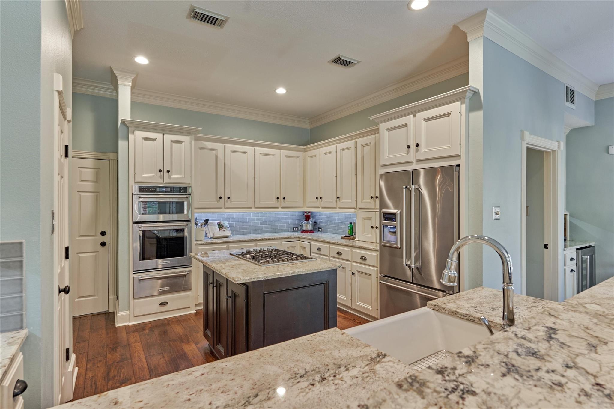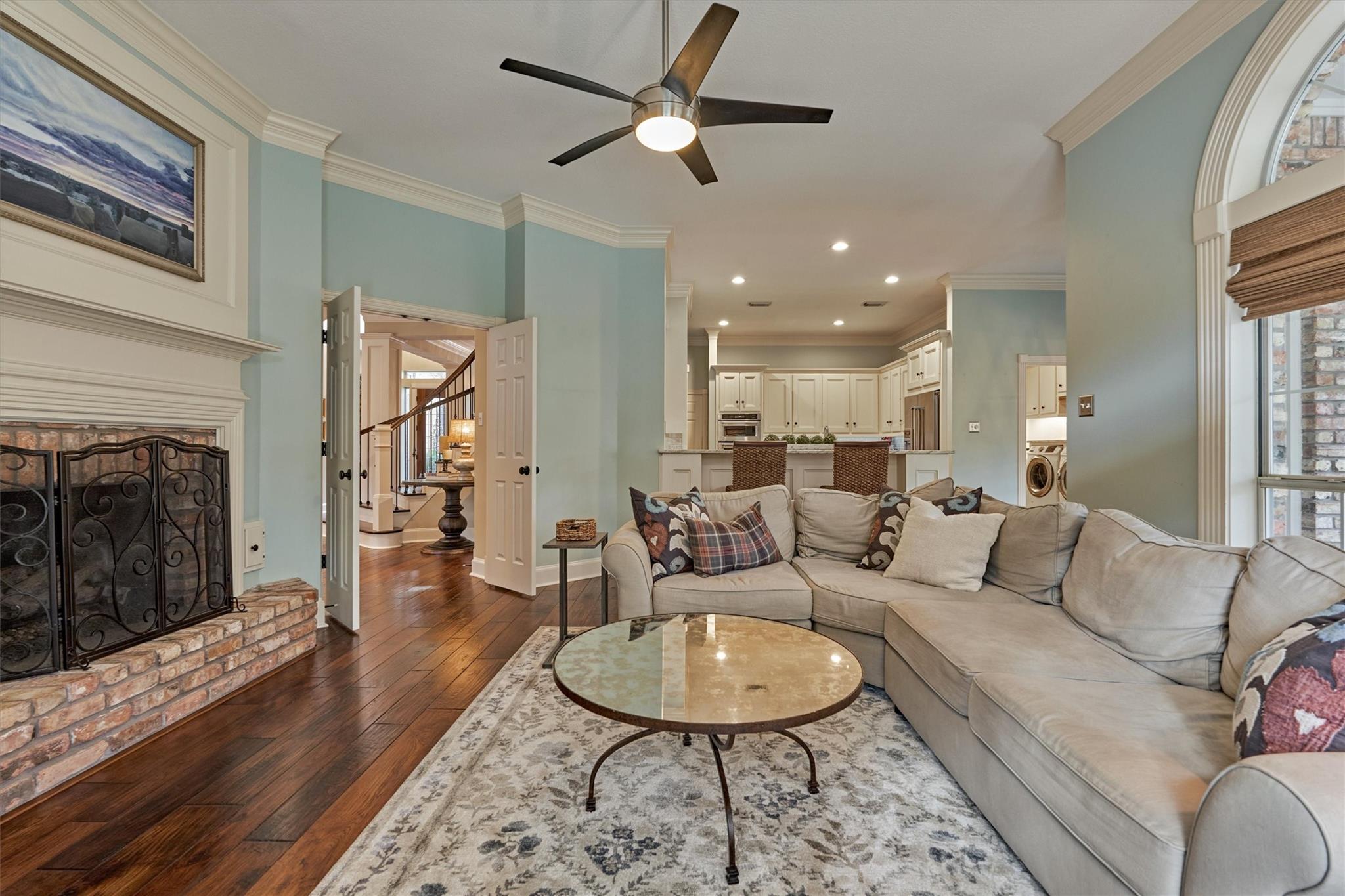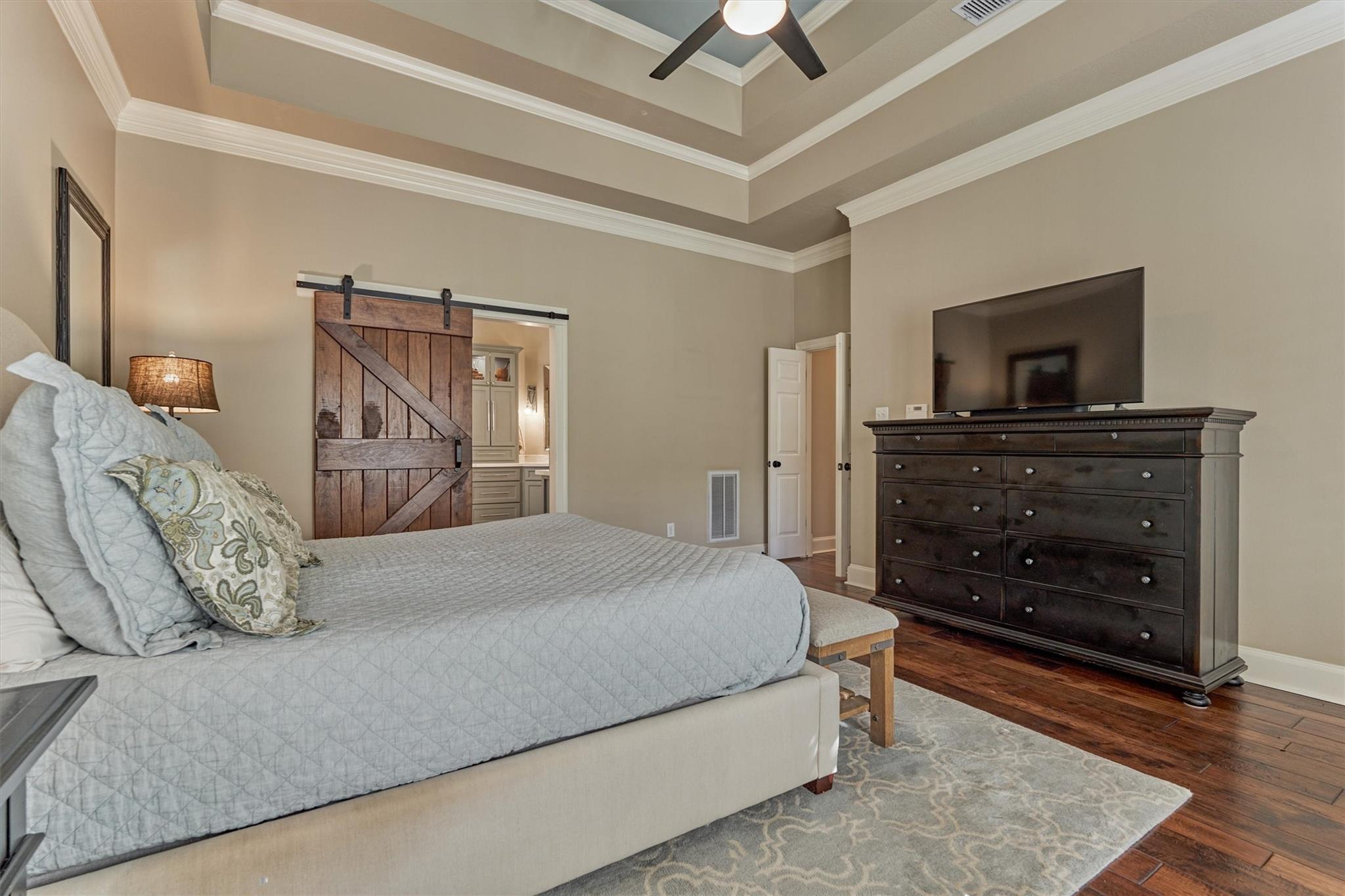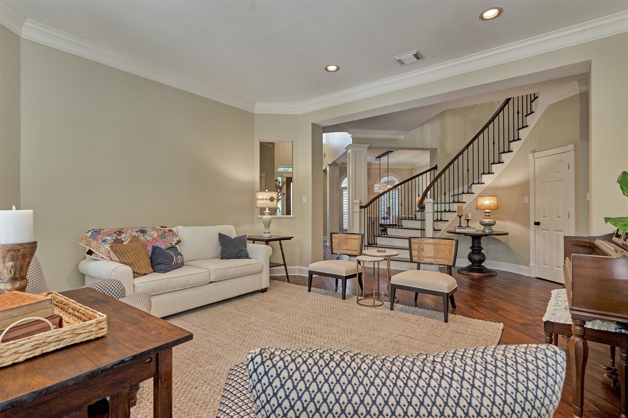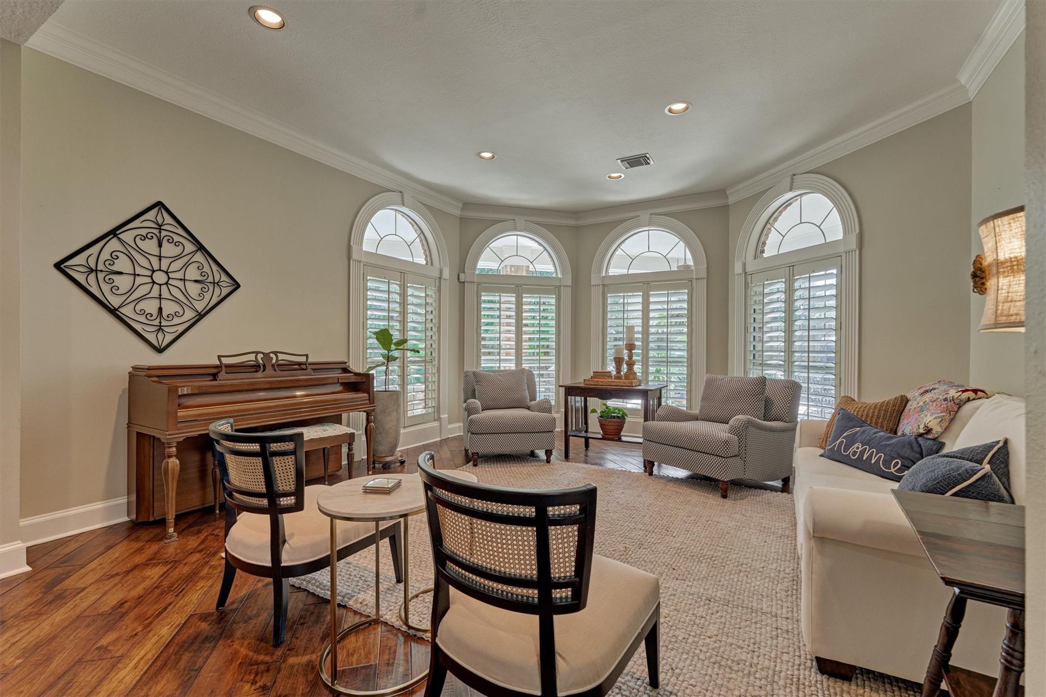 A QUINTESSENTIAL SOUTHERN CLASSIC - this 5 BR custom boasts a BRAND NEW roof & downstairs AC unit, designer updates throughout, a private backyard oasis w/sparkling Pebble Tec pool, fire pit, artificial turf for pets, covered patio/veranda, mature landscaping, and is situated in premier Palmer Woods neighborhood w/cascading golf course & serene water views for the ultimate drive-home experience! This pristine home has it all: continuous wood flooring, wood treads on stairs w/iron balusters, well-appointed chef's kitchen w/double ovens, custom cabinets, dry bar w/beverage fridge, gorgeous sight lines from den & living room to picturesque outdoor living area. Amazing built-ins & storage including 2 walk-in attics! Dedicated home office & secluded owner's retreat w/luxe bath featuring cast-iron tub, vanity & huge clst! Enclosed game room up + 4 spacious secondary BRs! 2-car garage w/workshop! 1/2 bath w/pool access! Mins to Palmer course & clubhouse, zoned to exemplary Galatas Elem/TWHS!