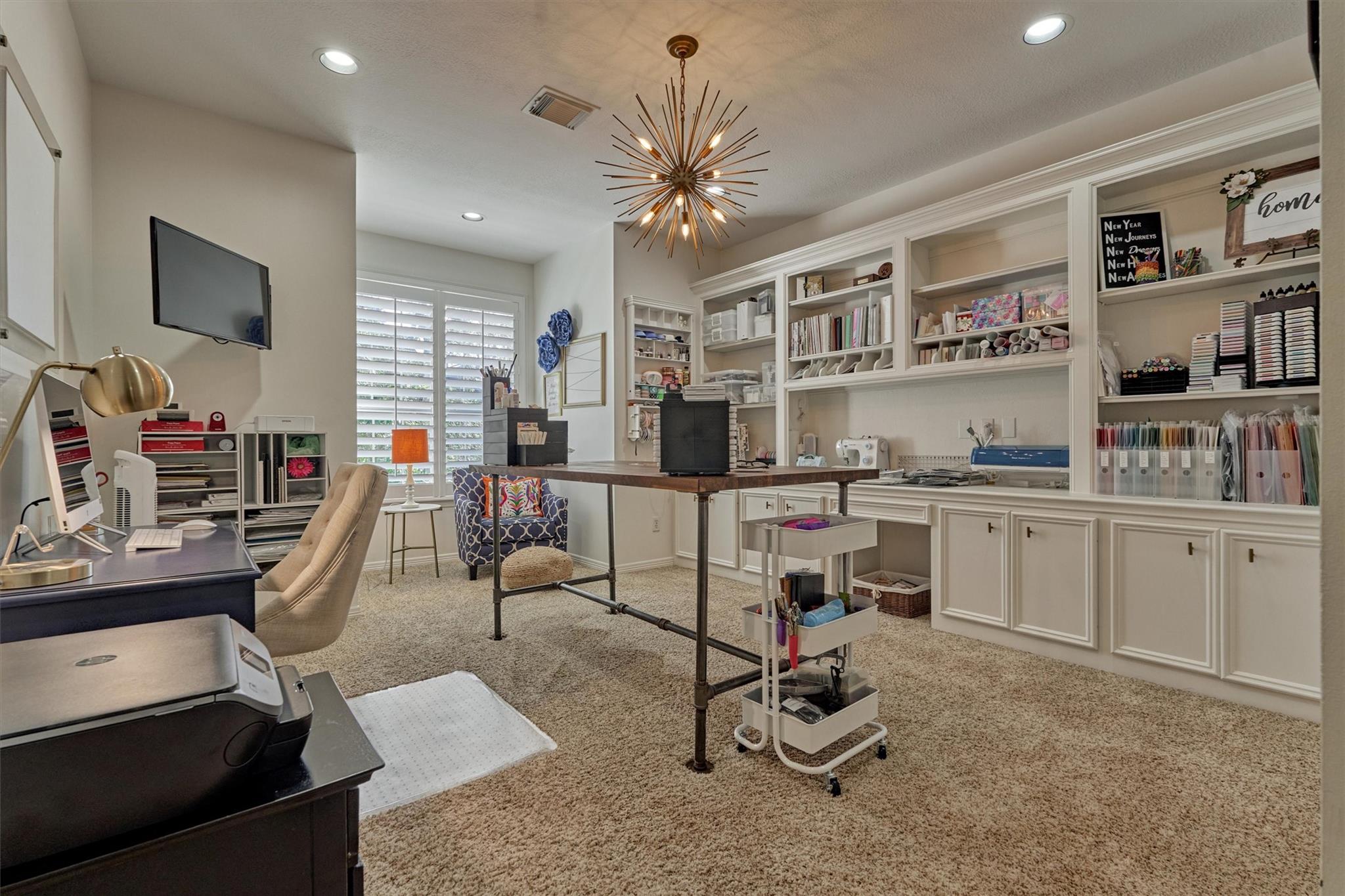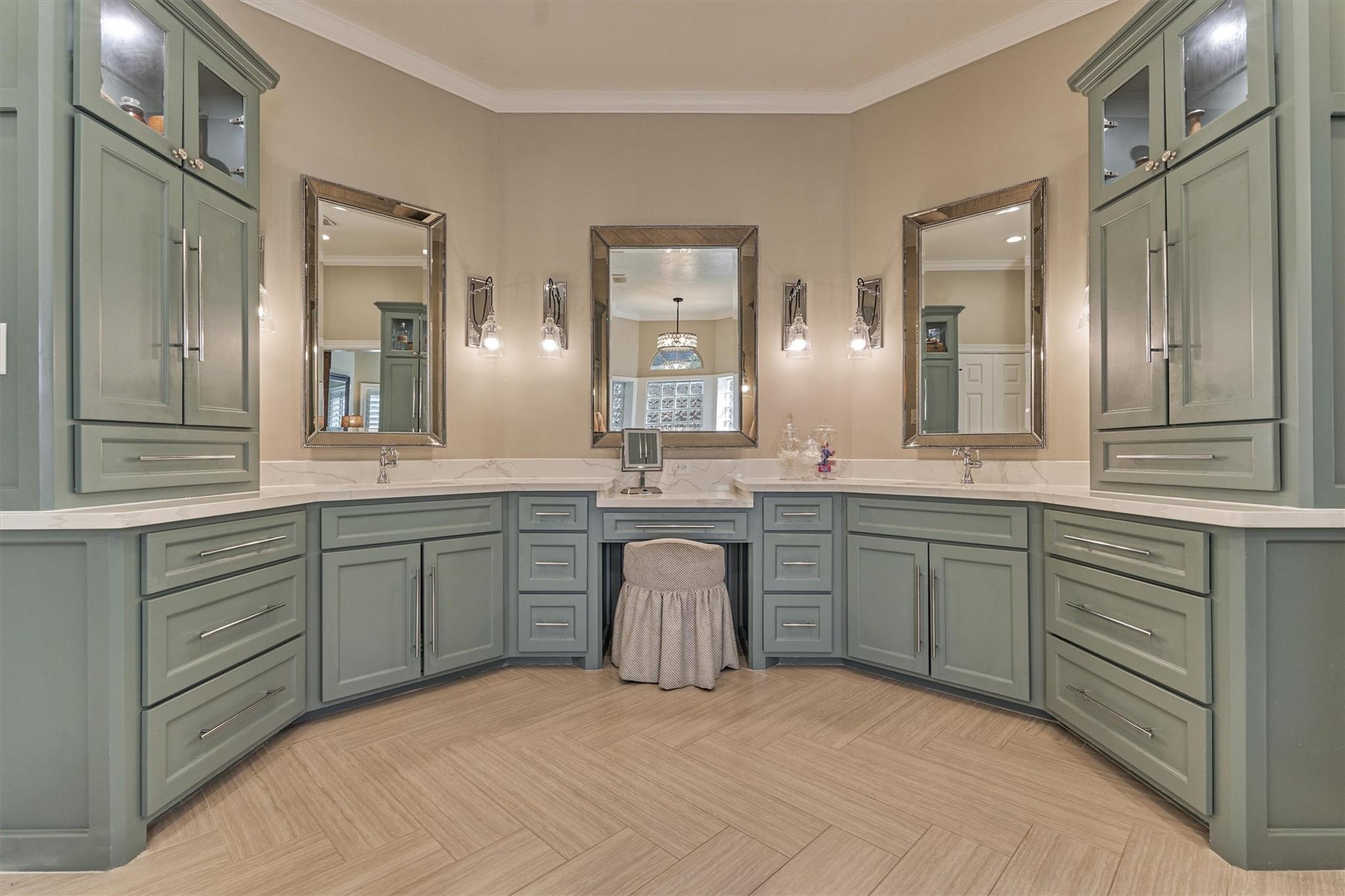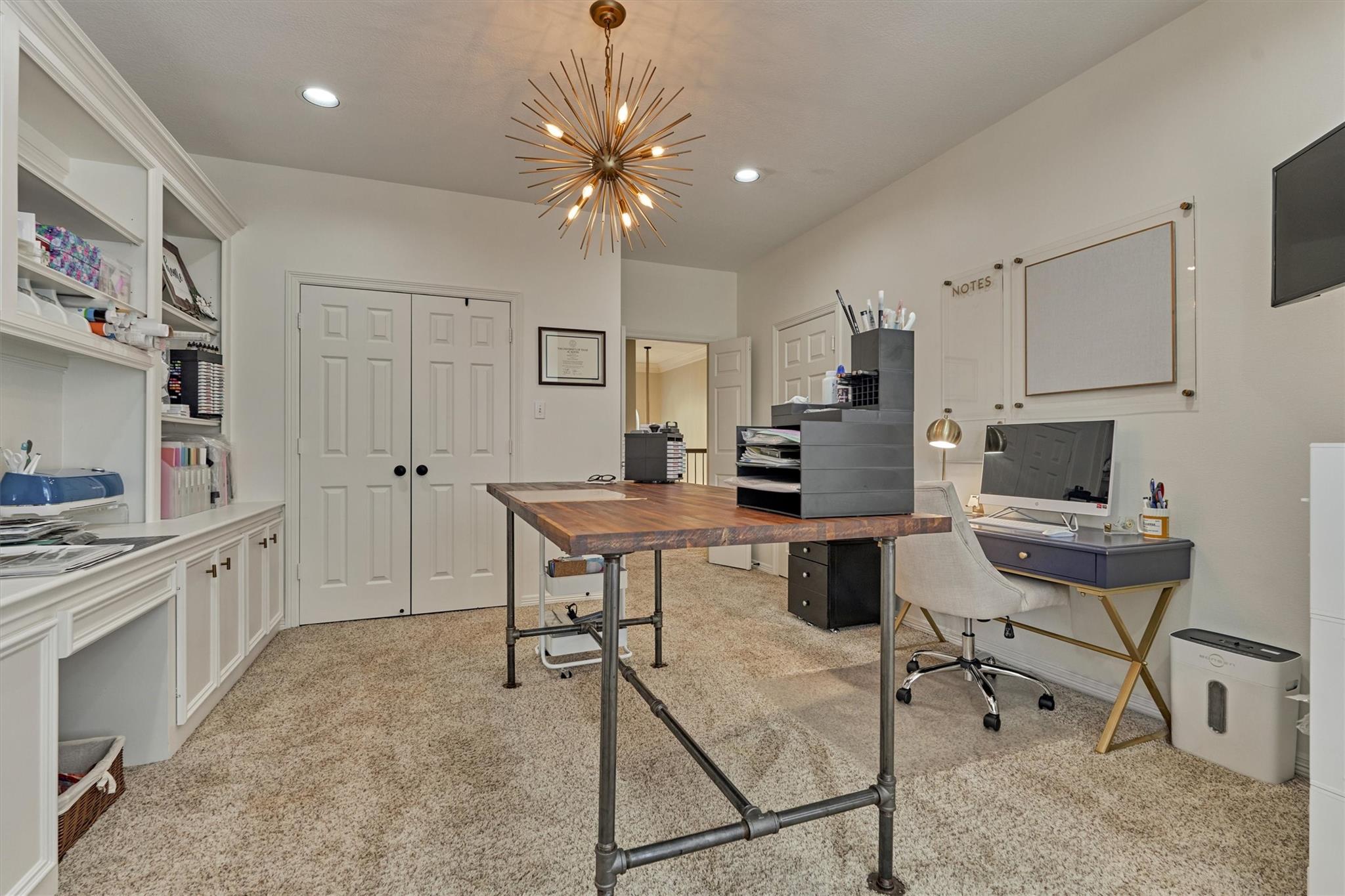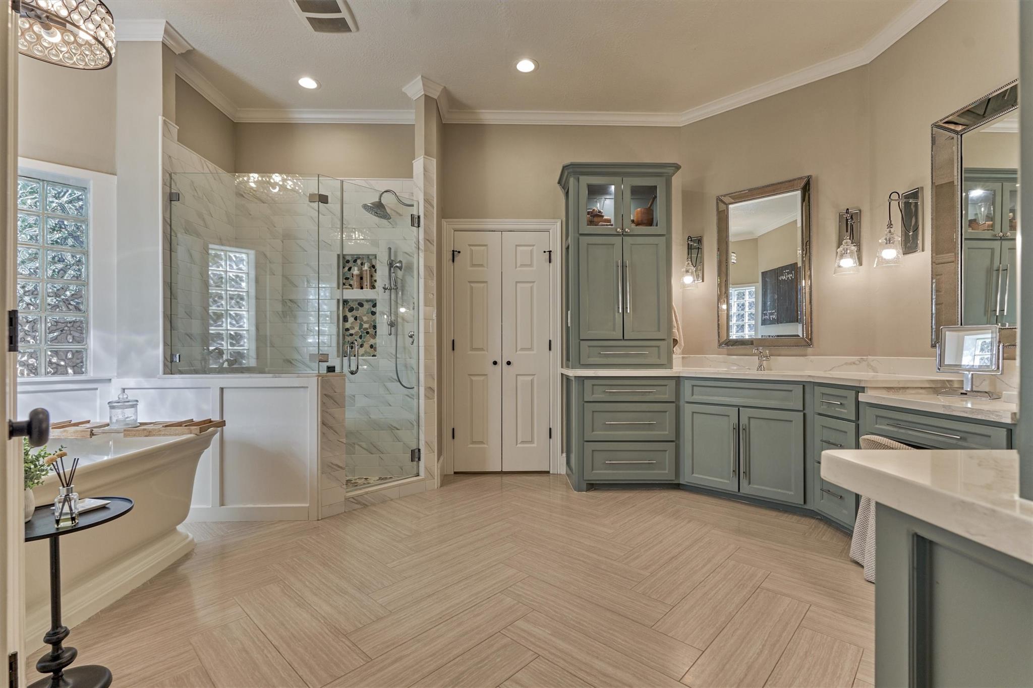 A QUINTESSENTIAL SOUTHERN CLASSIC - this 5 BR custom boasts a BRAND NEW roof & downstairs AC unit, designer updates throughout, a private backyard oasis w/sparkling Pebble Tec pool, fire pit, artificial turf for pets, covered patio/veranda, mature landscaping, and is situated in premier Palmer Woods neighborhood w/cascading golf course & serene water views for the ultimate drive-home experience! This pristine home has it all: continuous wood flooring, wood treads on stairs w/iron balusters, well-appointed chef's kitchen w/double ovens, custom cabinets, dry bar w/beverage fridge, gorgeous sight lines from den & living room to picturesque outdoor living area. Amazing built-ins & storage including 2 walk-in attics! Dedicated home office & secluded owner's retreat w/luxe bath featuring cast-iron tub, vanity & huge clst! Enclosed game room up + 4 spacious secondary BRs! 2-car garage w/workshop! 1/2 bath w/pool access! Mins to Palmer course & clubhouse, zoned to exemplary Galatas Elem/TWHS!